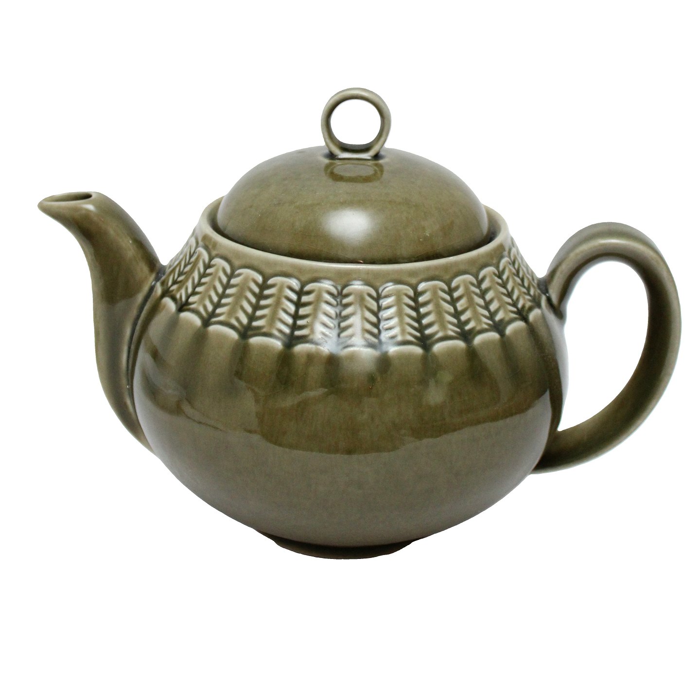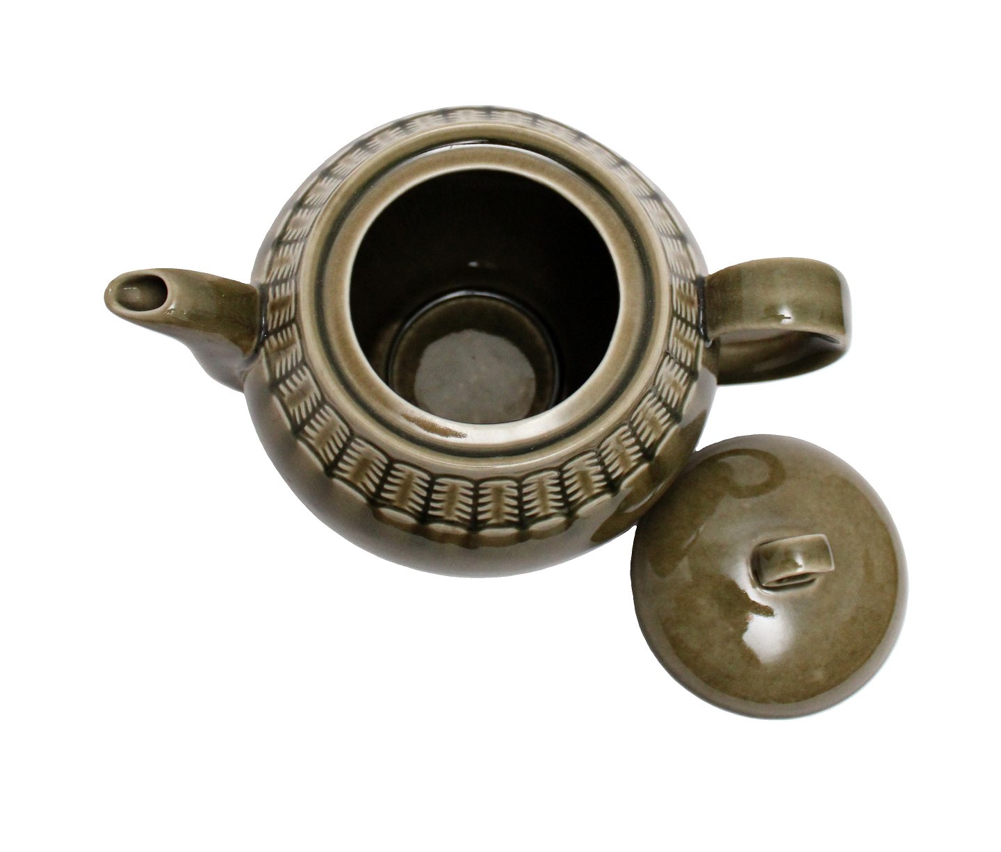 Desiree, Grøn glasseret tekande, som vi desværre ikke kender navnet på, men som er yderst sjælden. Højde 18 cm. Længde 24 cm. Pris: 325 kr. stk. Lager: 1