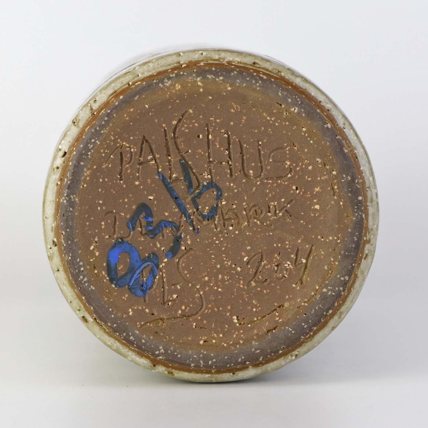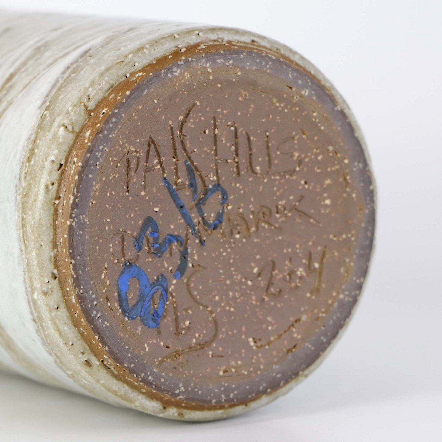 Cylinderformet vase i glaseret stentøj med kantet hvidt geometrisk mønster. Nr. 264