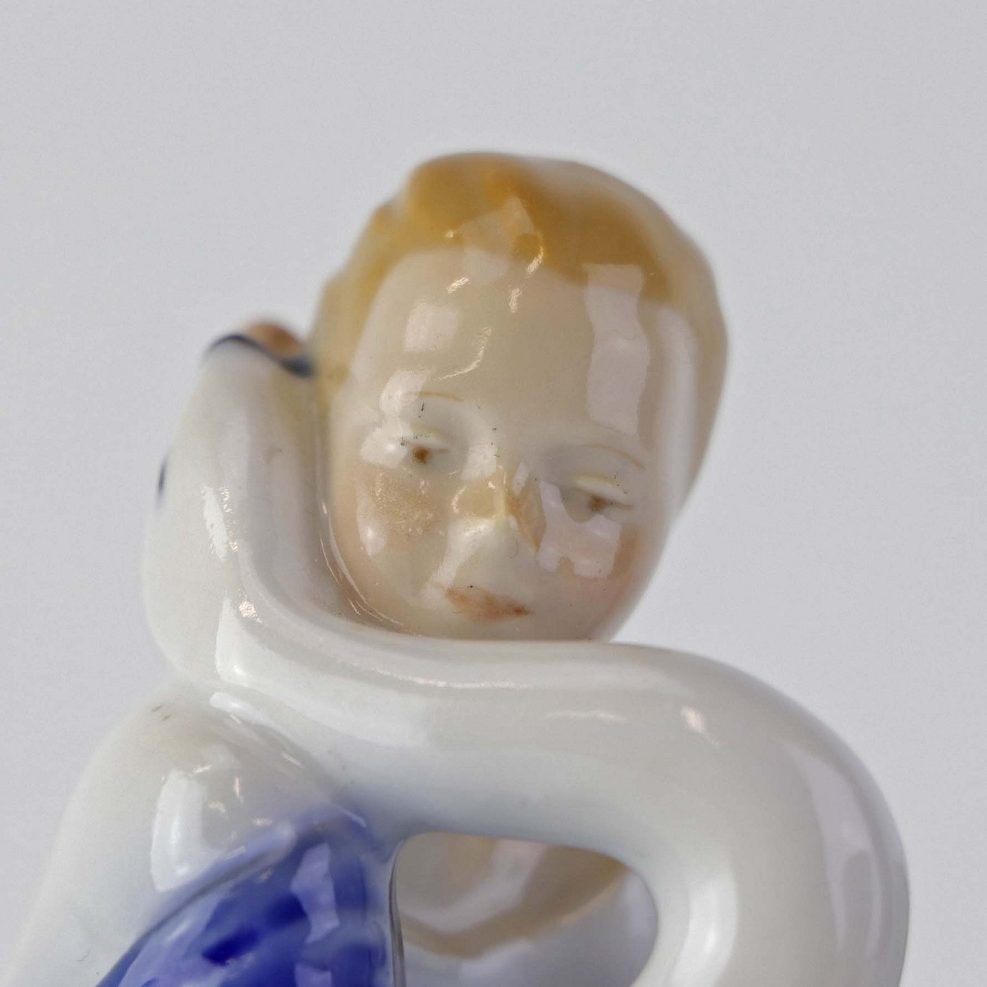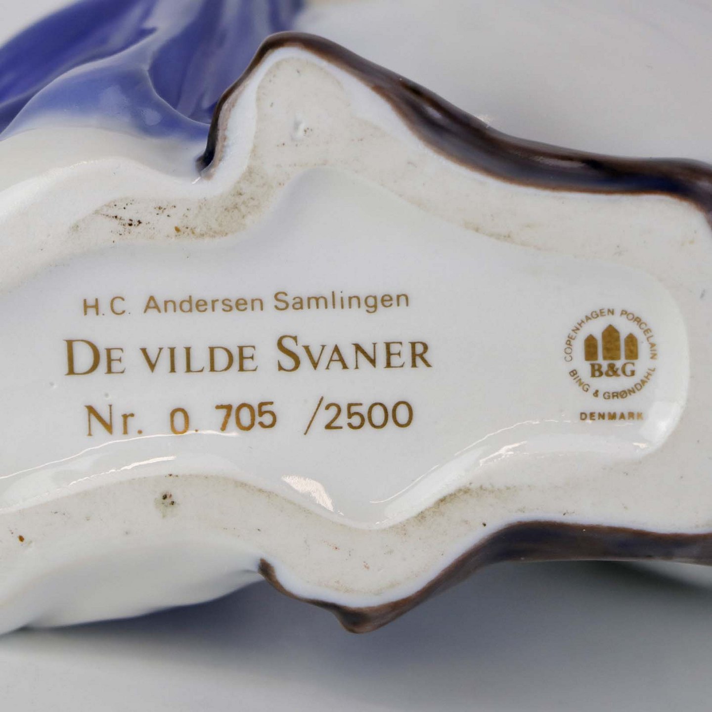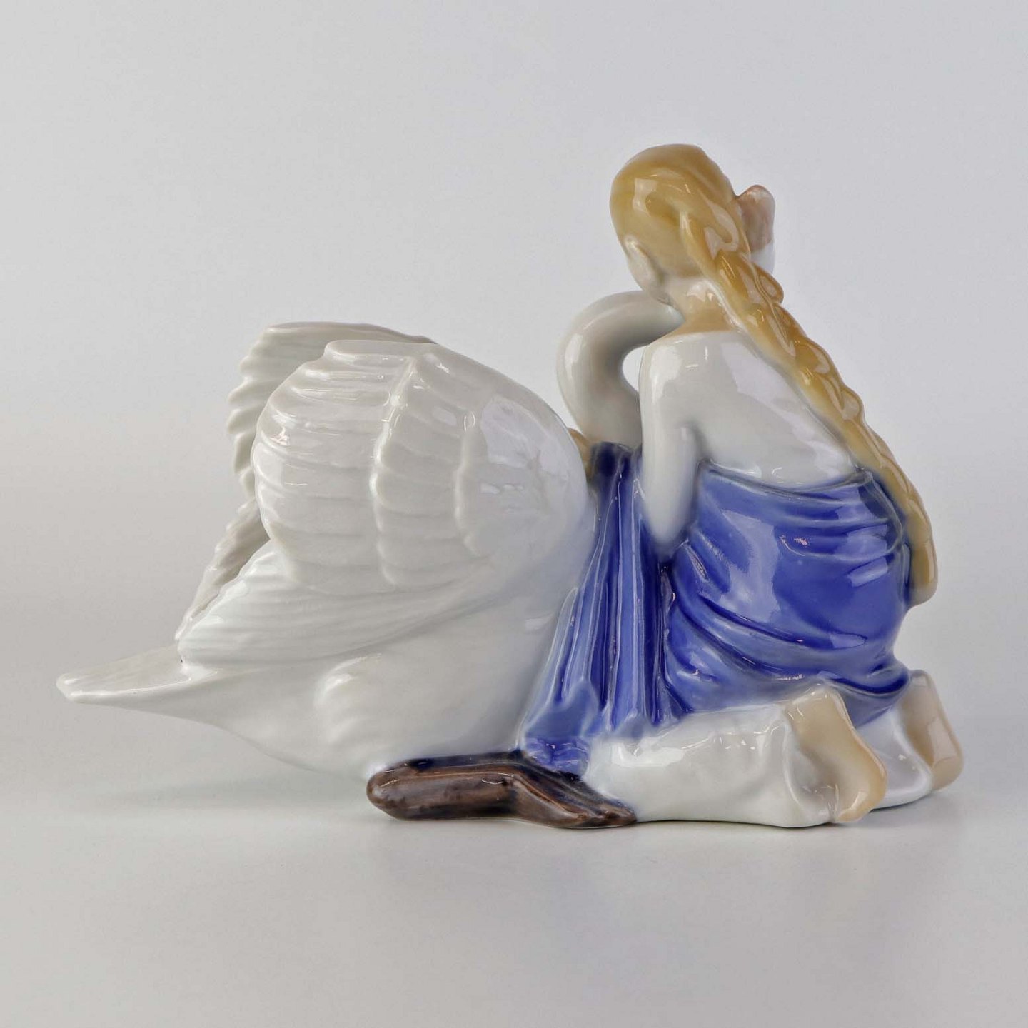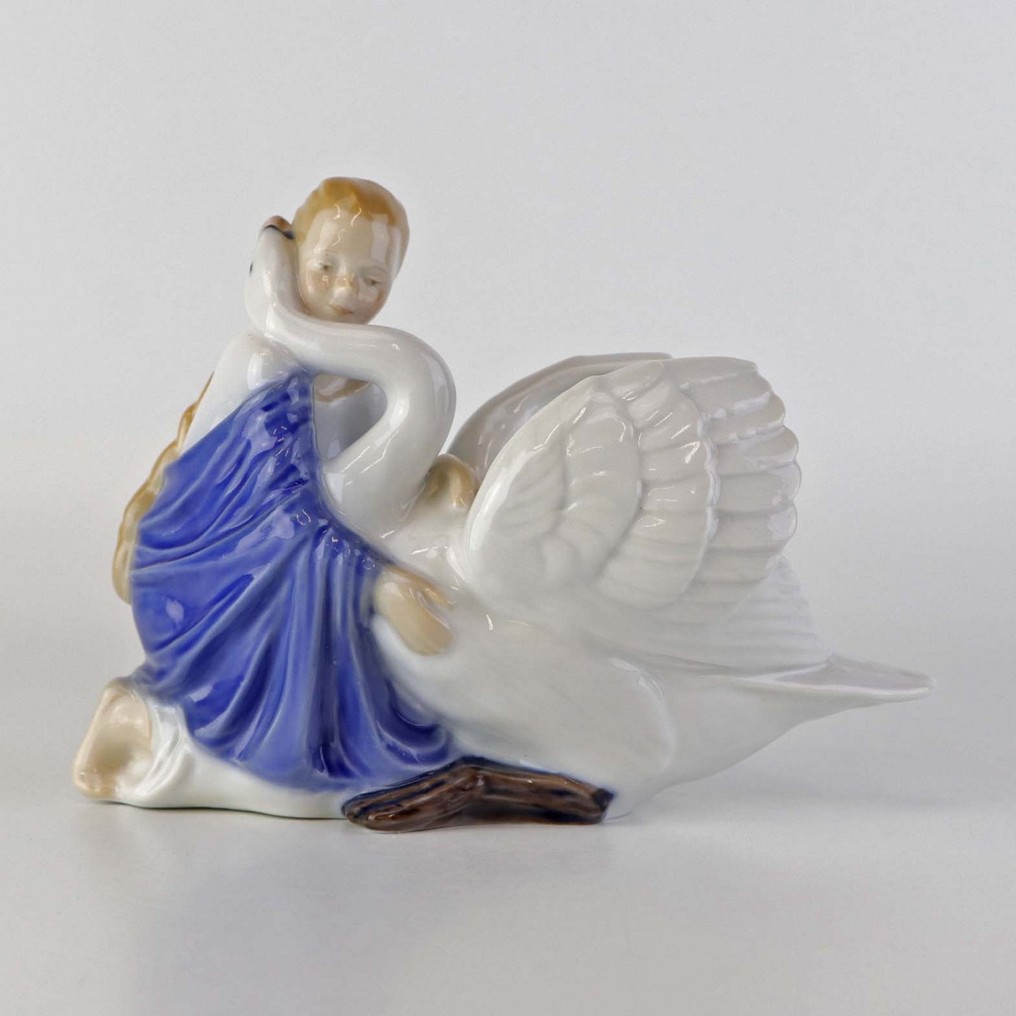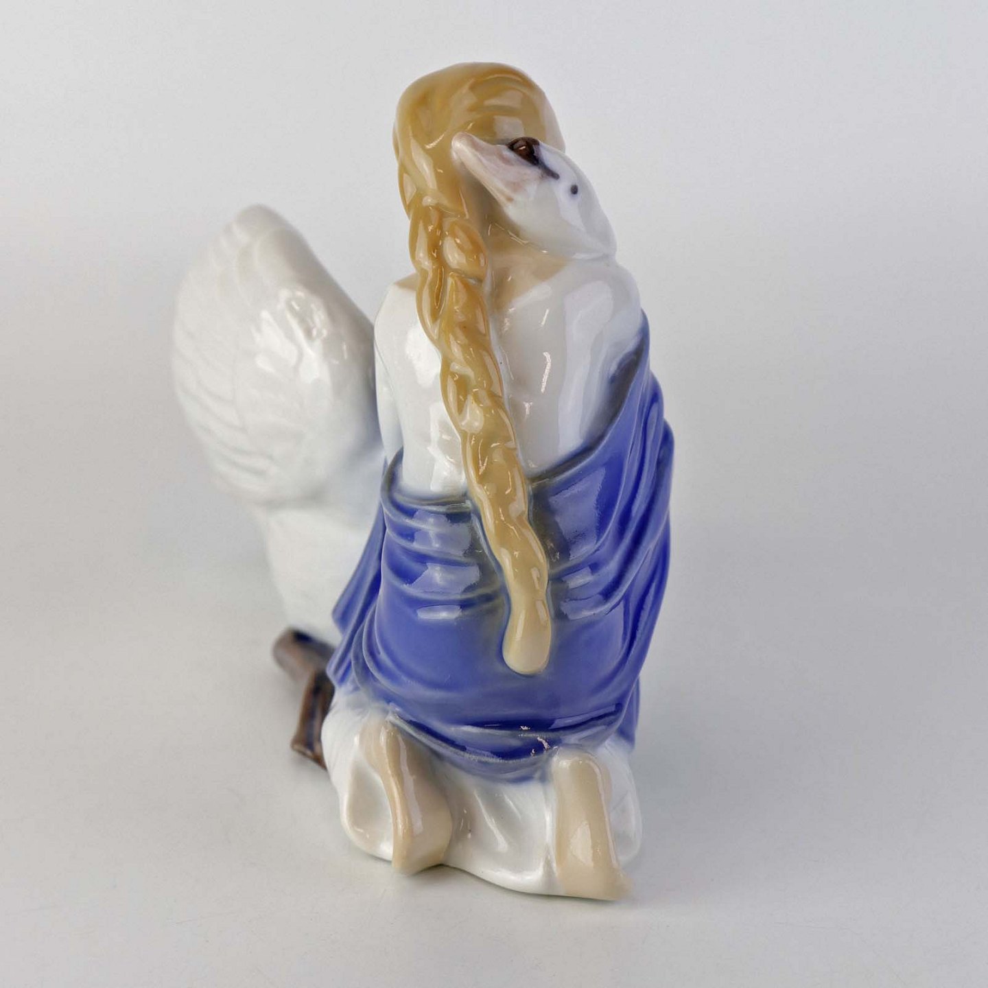 Figur i porcelæn med motiv af pige med svane fra eventyret De vilde svaner tilhørende H.C. Andersen samlingen. Nr. 705/2500