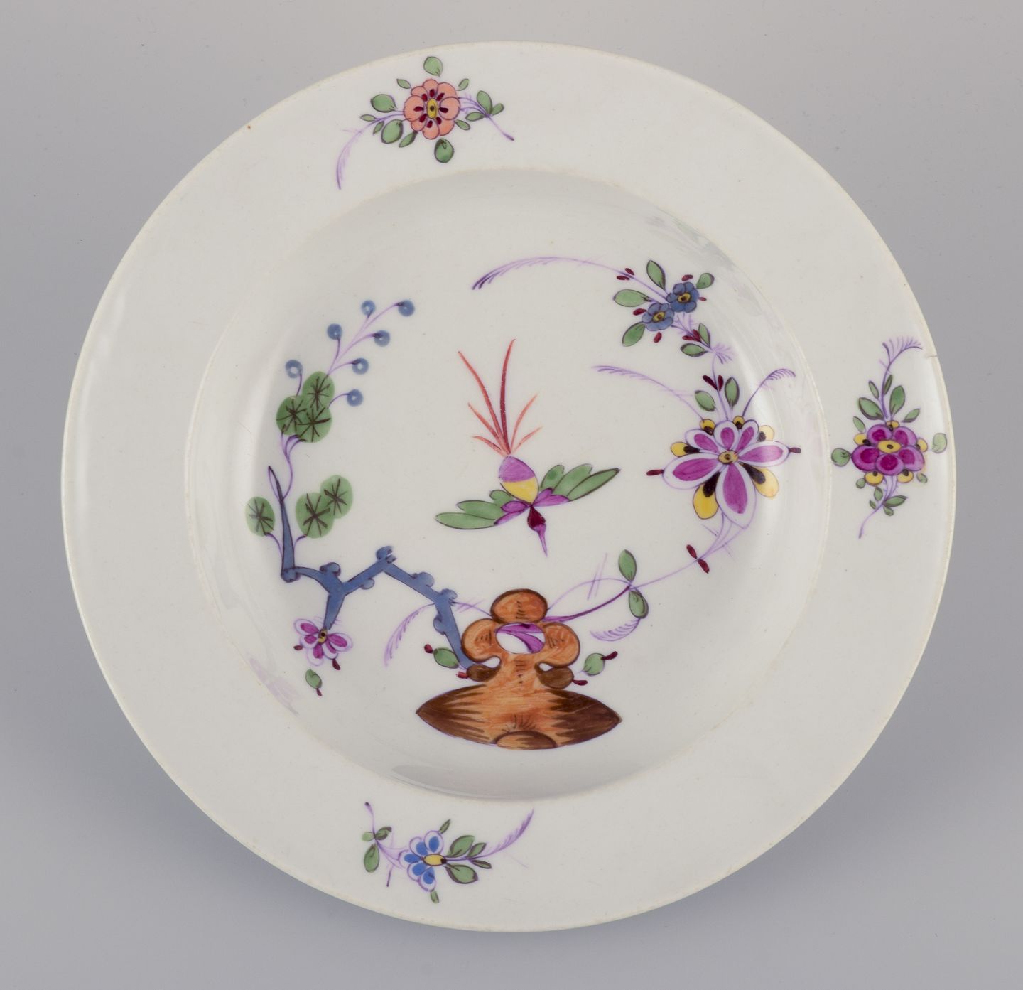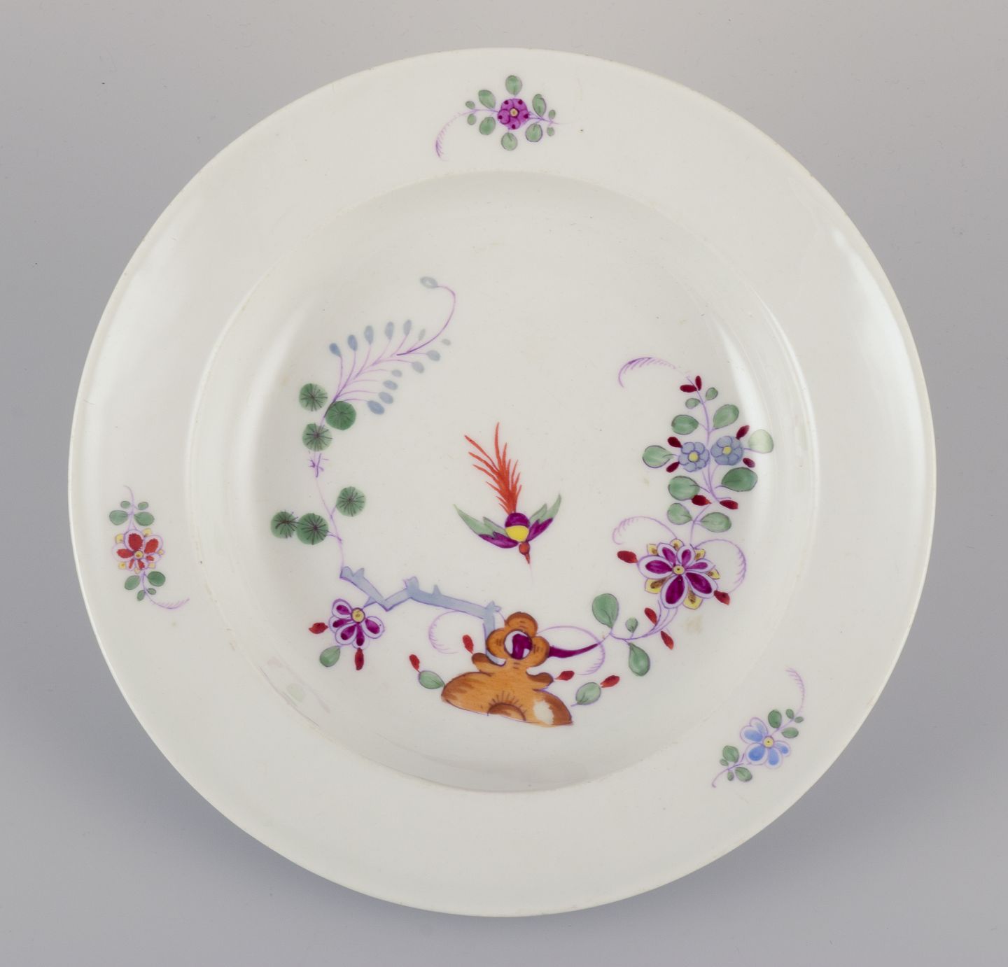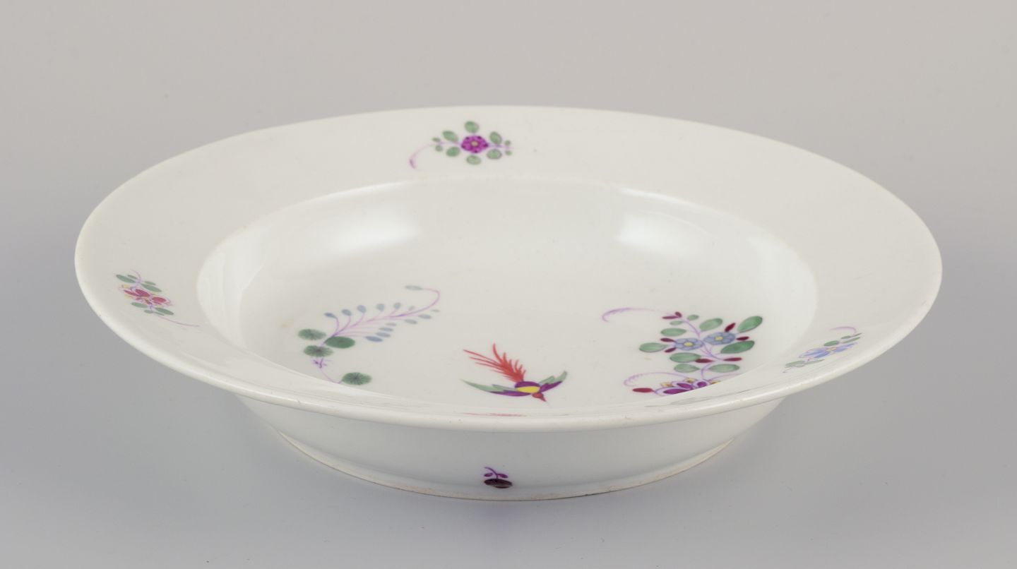 Meissen, Tyskland. Et sæt på fire antikke suppetallerkener af porcelæn.