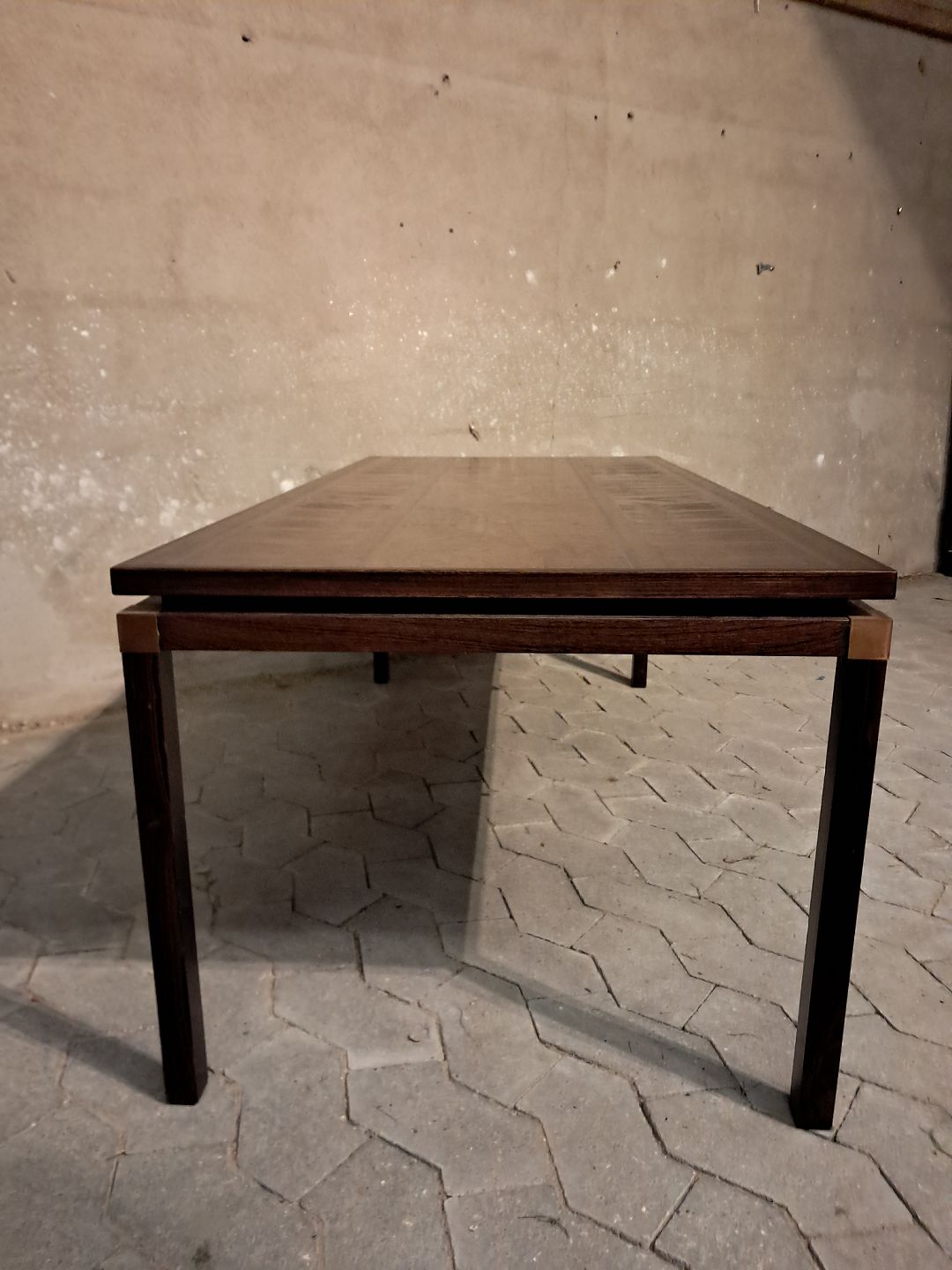 Sofabord med egyptiske motiver i palisander med metalplade, fra 1970erne.