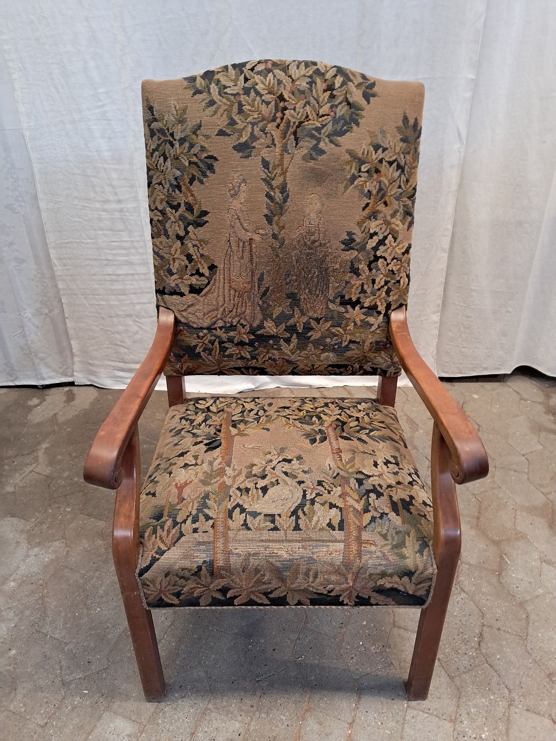 Armstol i massivt mahogni, fra 1950erne.