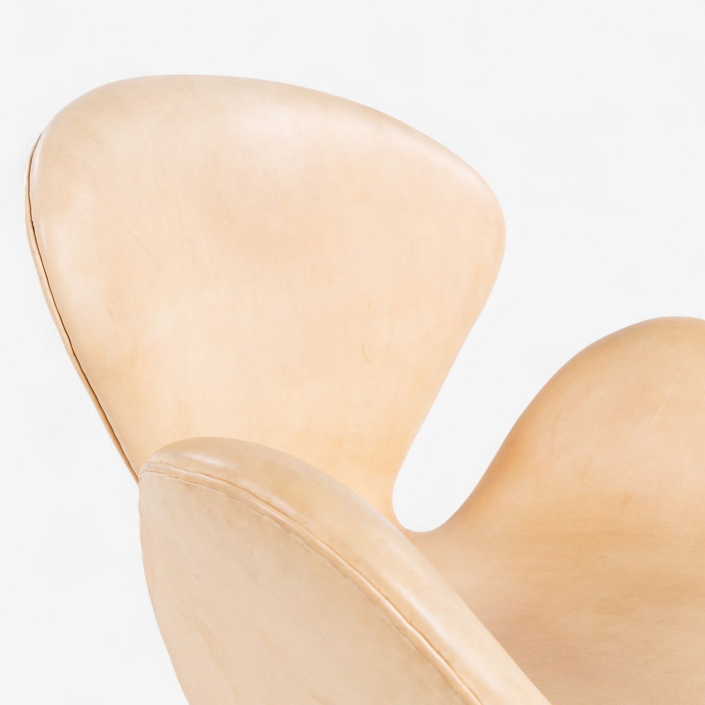 AJ 3320 - 'Svanen' i patineret lyst naturlæder på fod af aluminium m. vippefunktion.