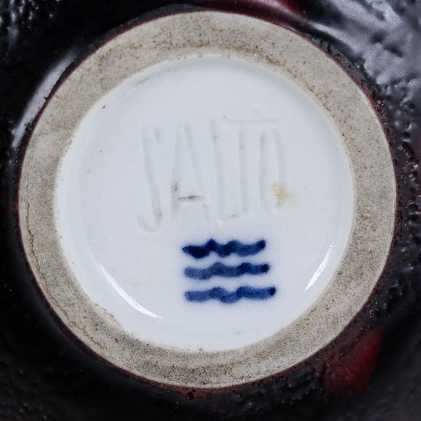 Løgformet stentøjsvase modelleret med relief og dekoreret med okseblodsglasur. Signeret.