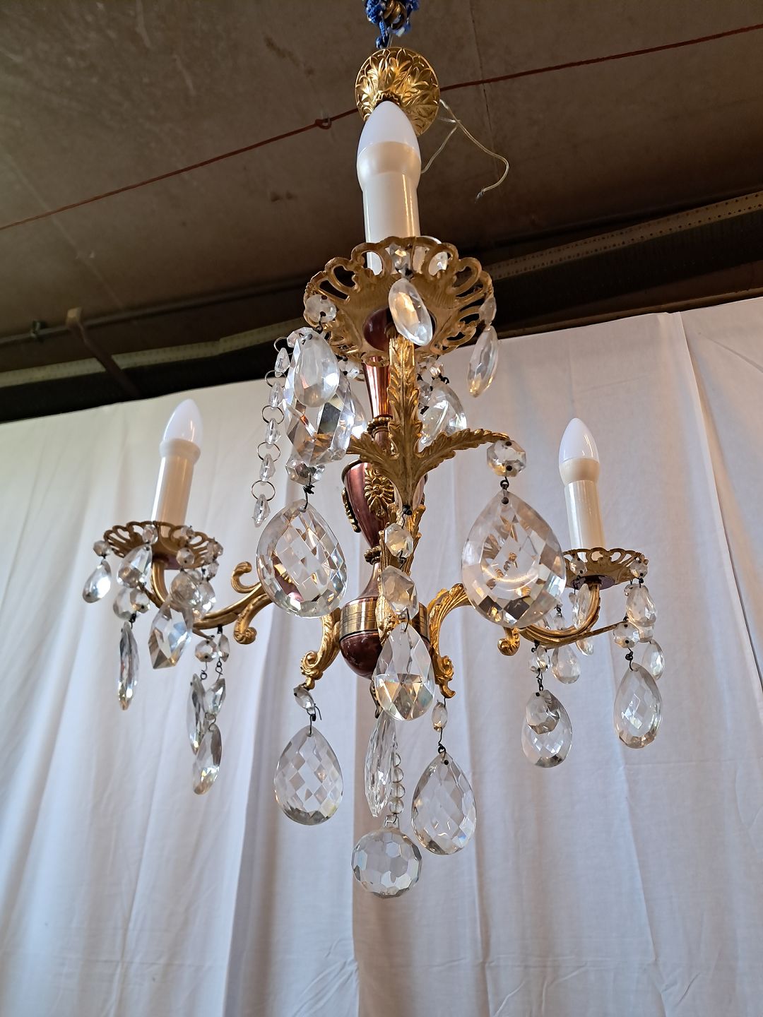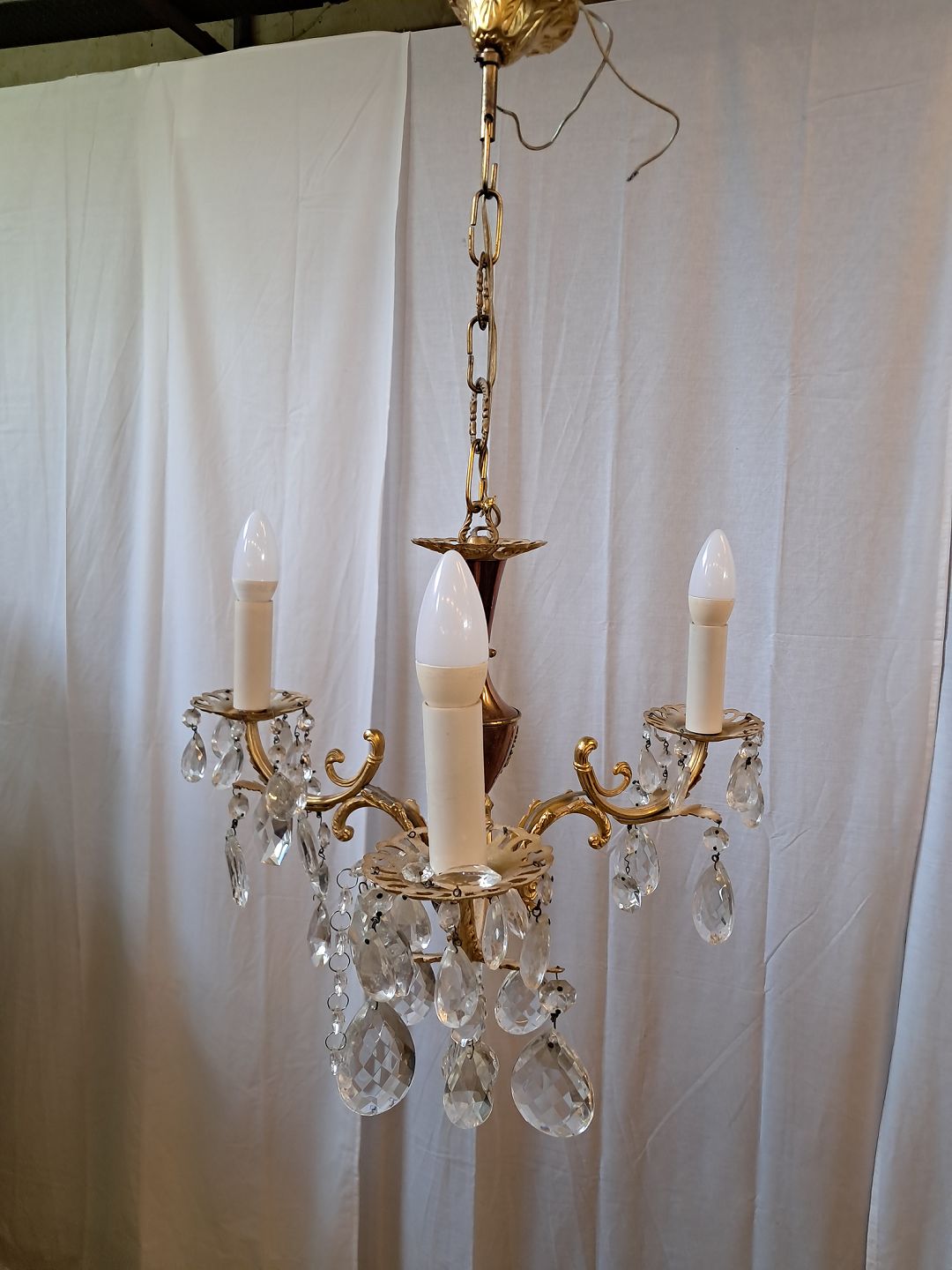Lille prismekrone i metal og glas, fra 1980erne.