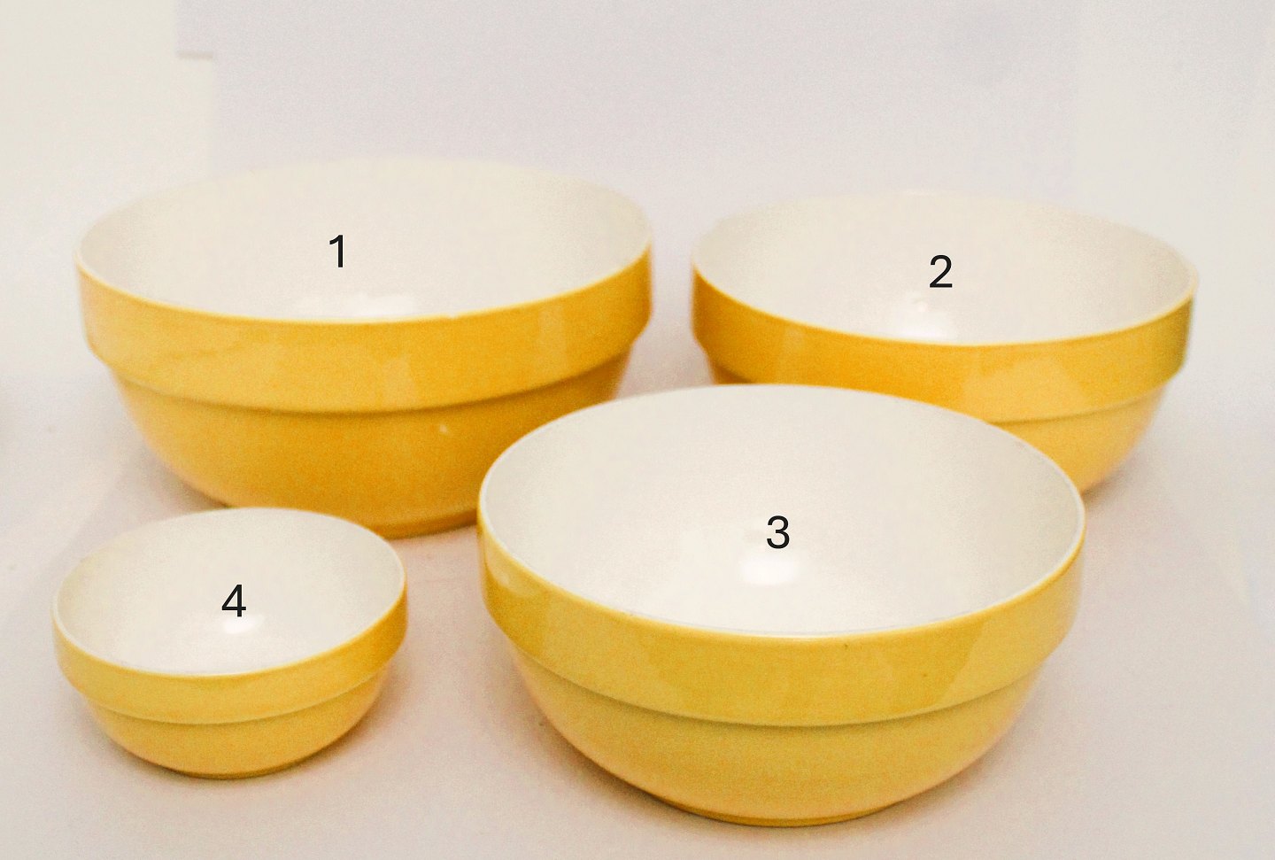 Aluminia, Susanne smukke gule skåle i 4 størrelser i sjælden flot stand uden krakeleringer.