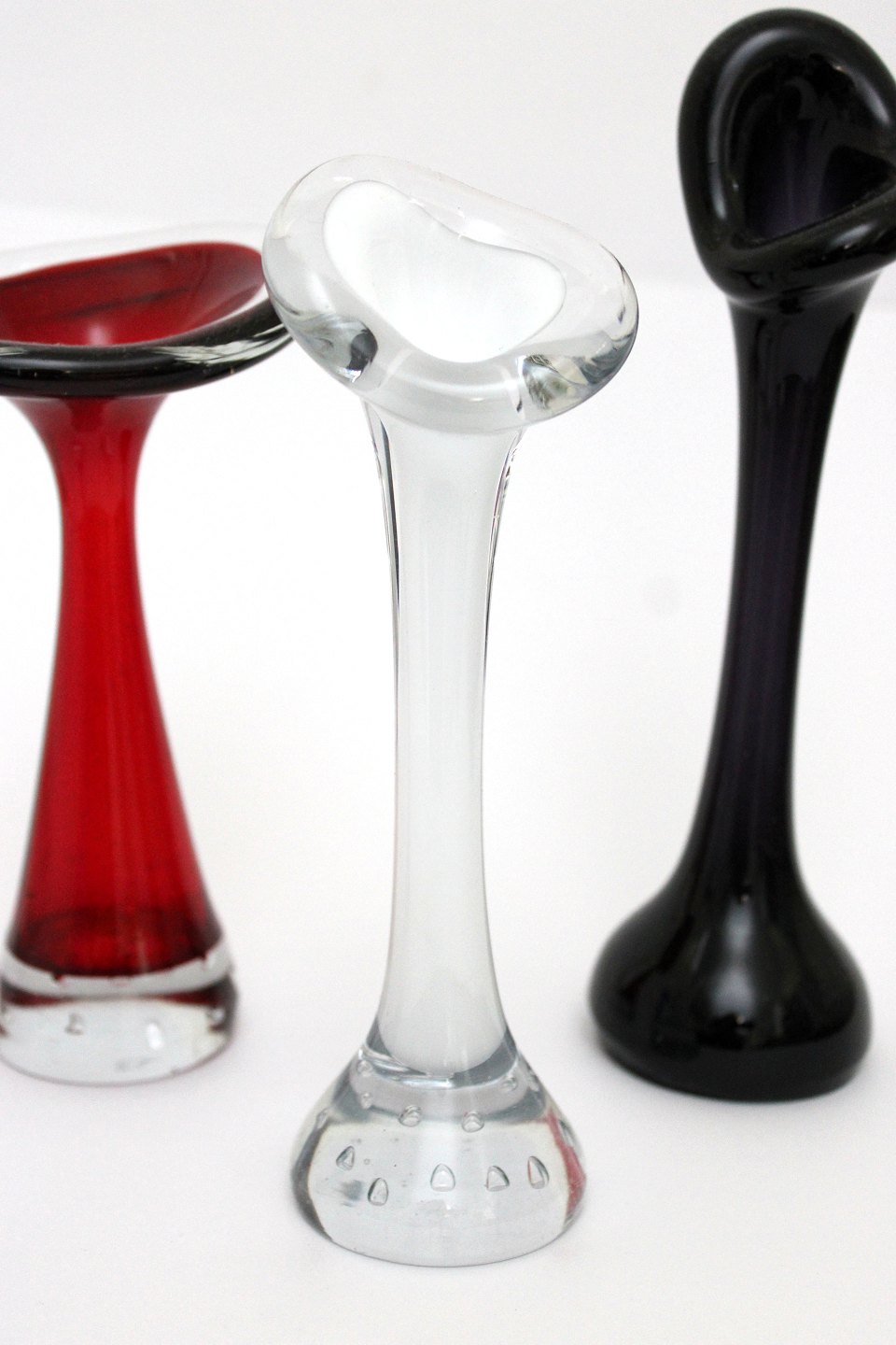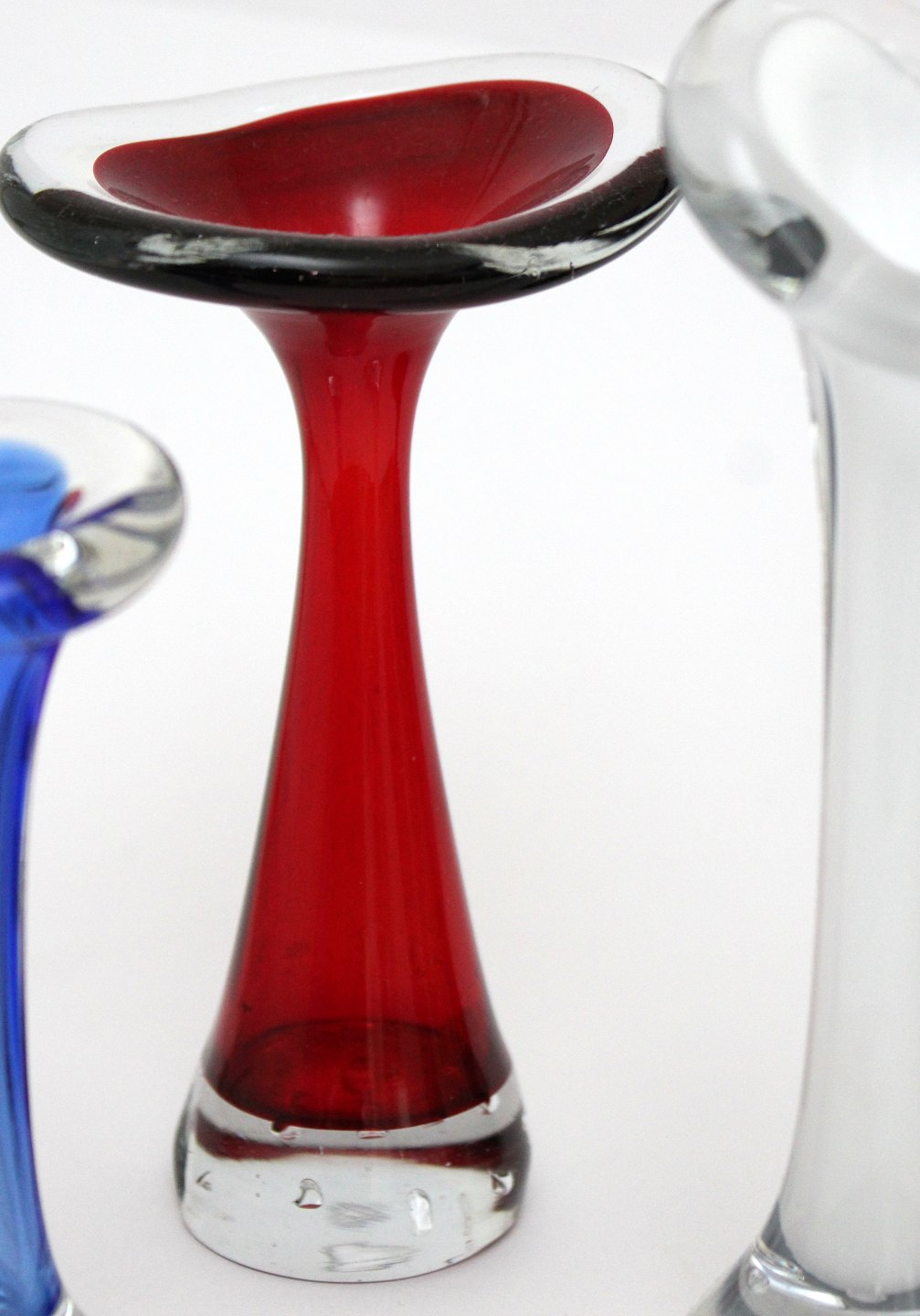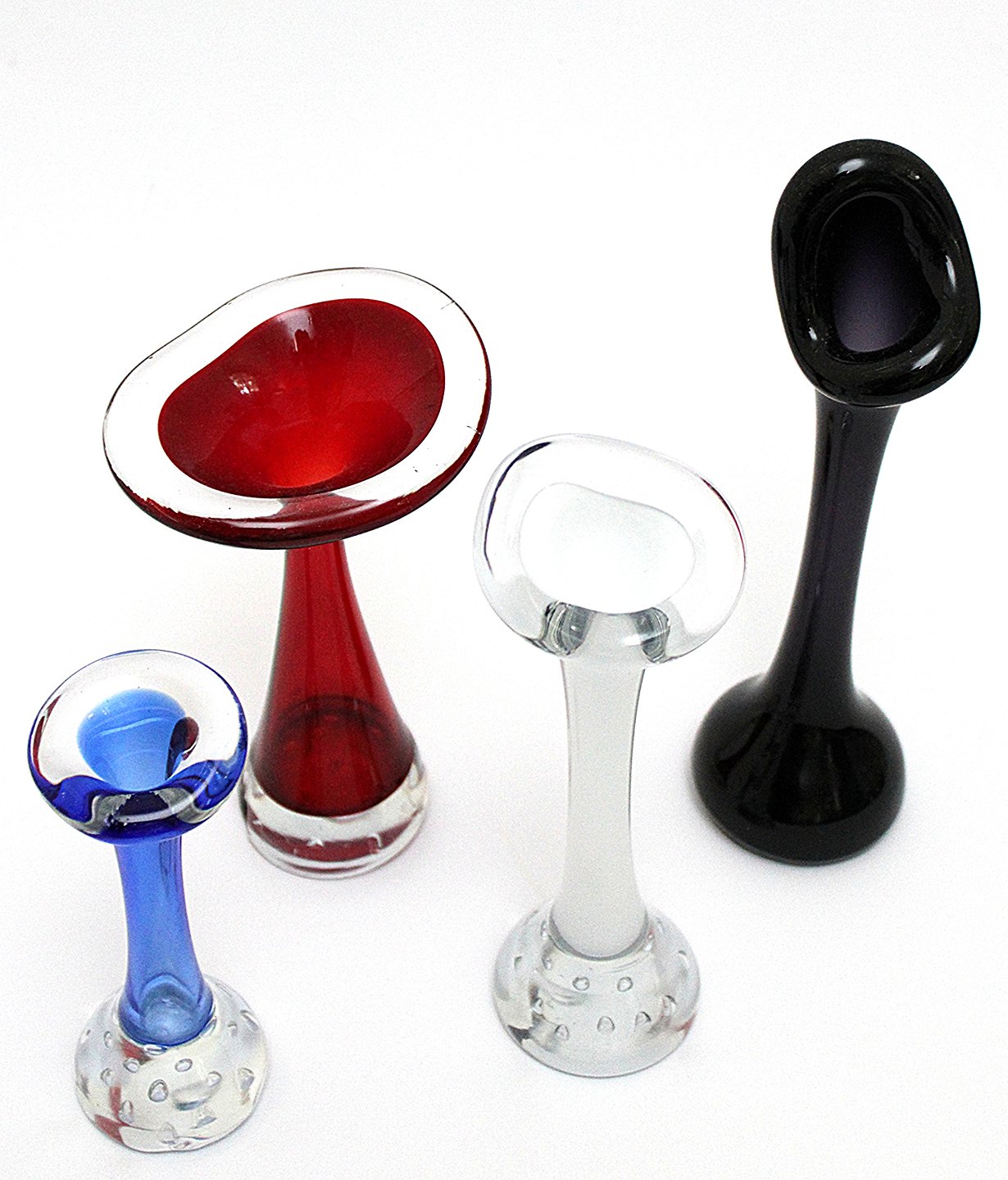 Rød med stor krave og bobler i bund. Højde 16 cm. Pris: 175 kr.