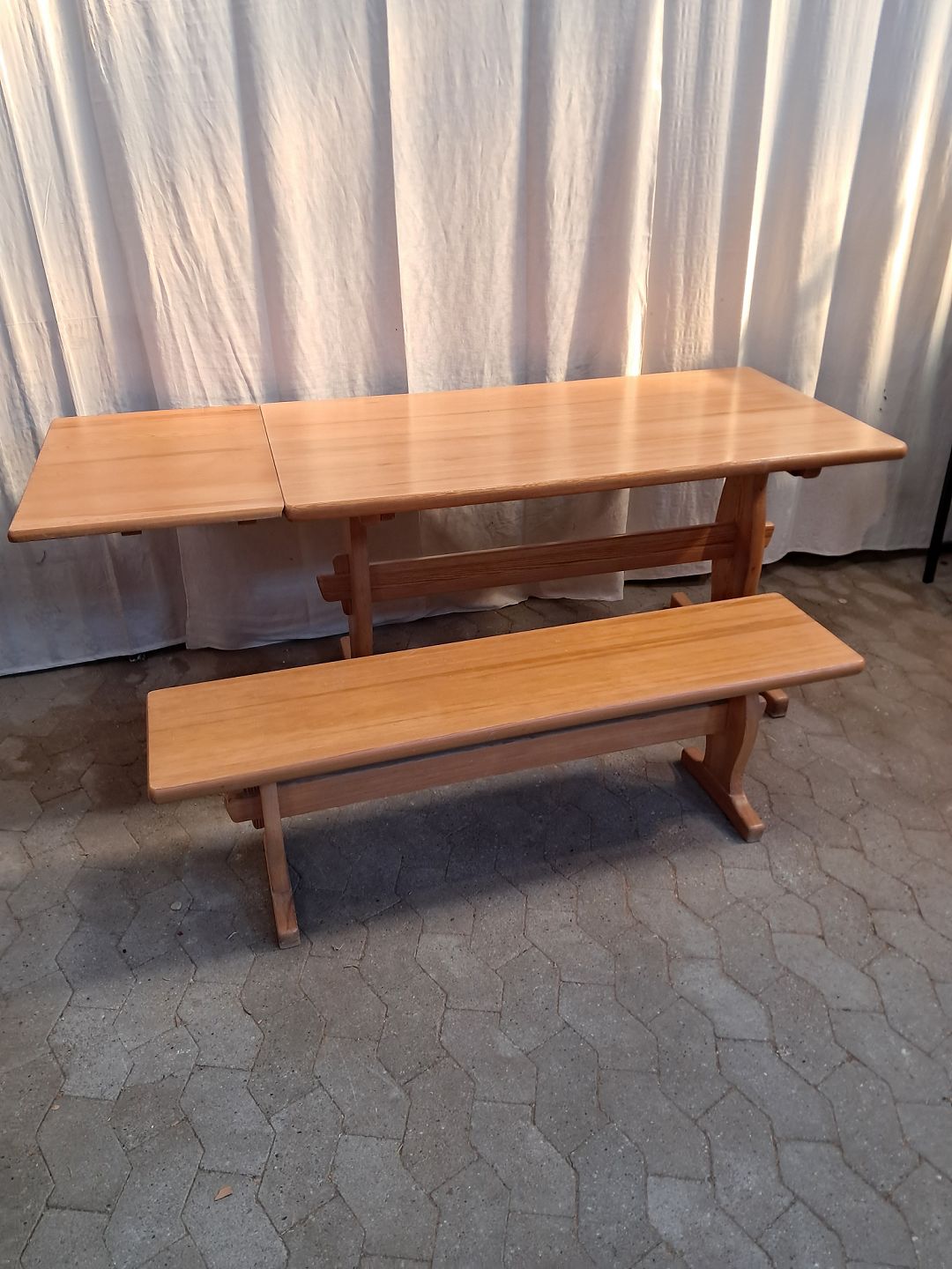 Bord og bænk i massivt fyrretræ, fra 1990erne.