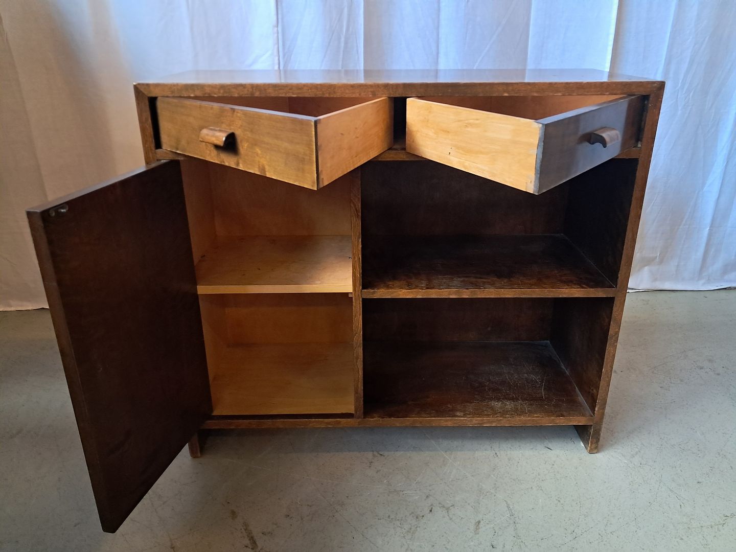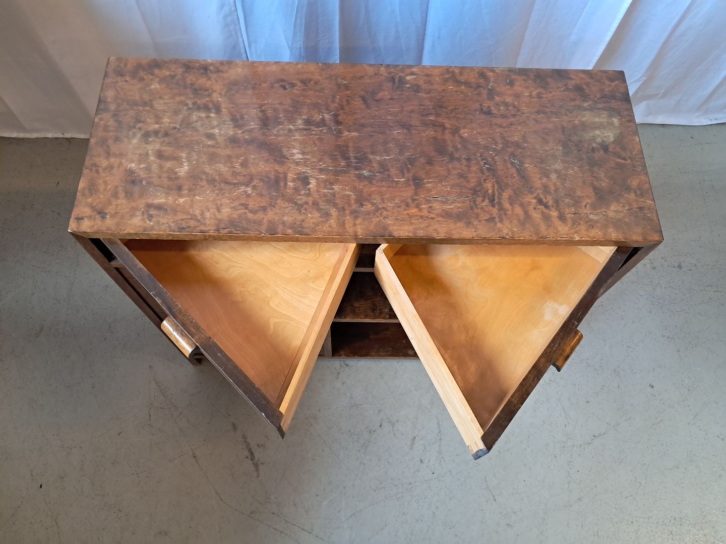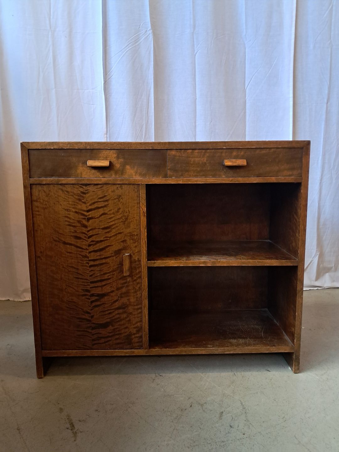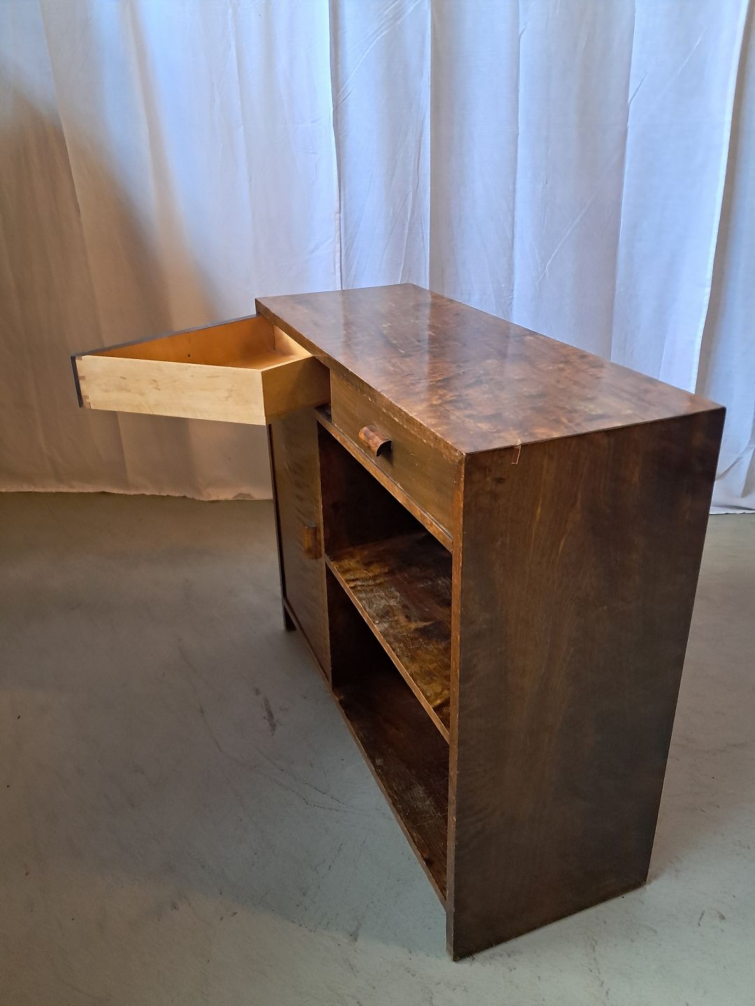 Reol i fineret birketræ, fra 1930erne.