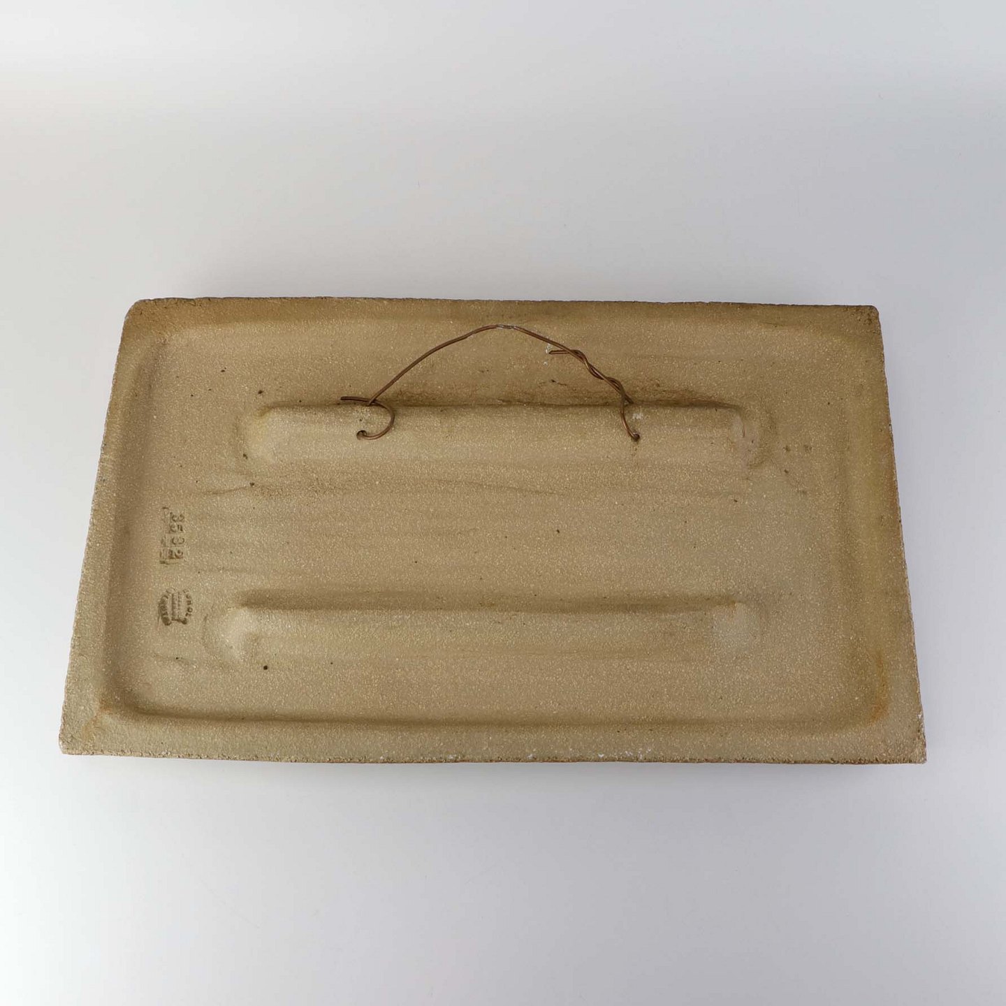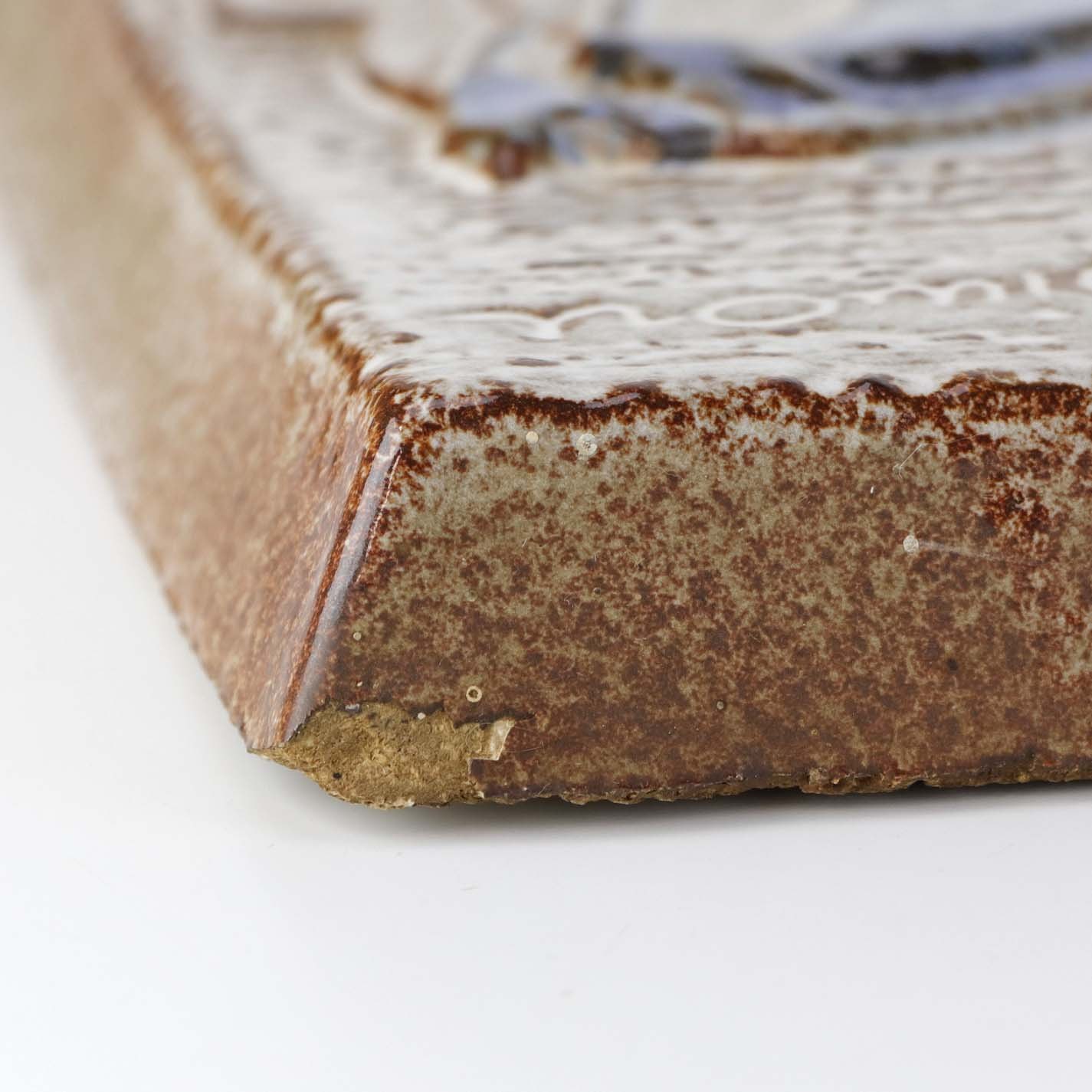 Fremstår med mindre afslag på på bagkanten af relieffet.