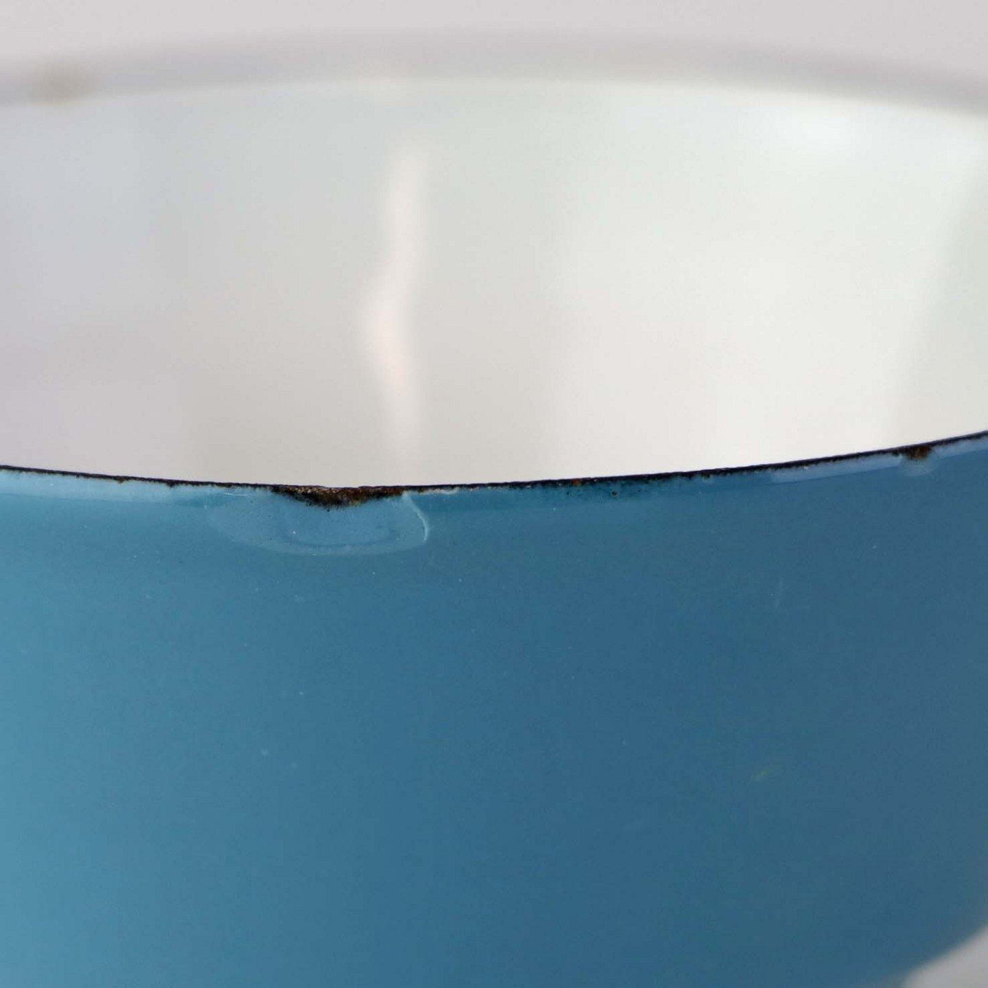 Fremstår med mindre afslag i emaljen på skål kanten samt indvendige brugsspor.