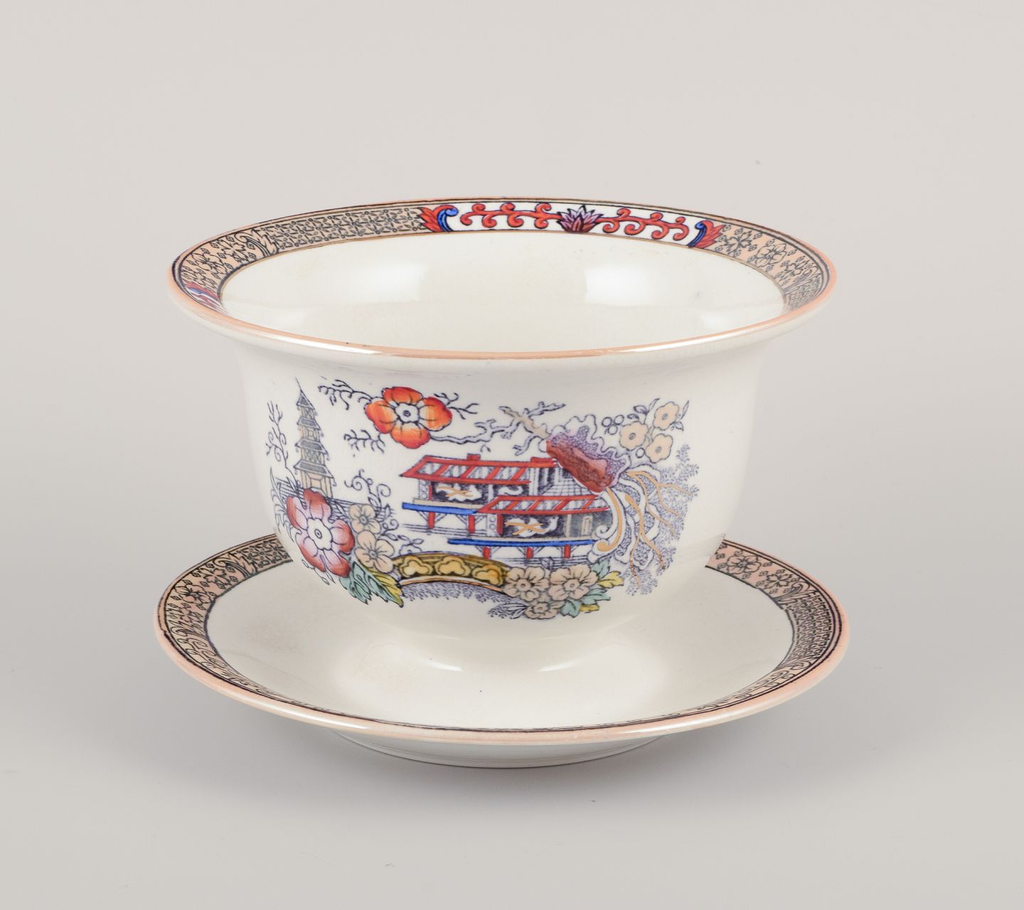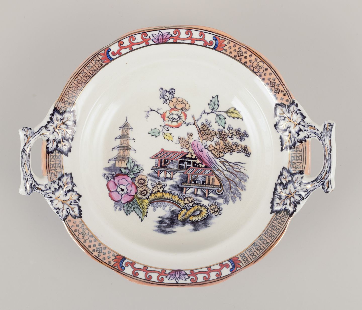Rörstrand, Sverige. ”Japan” sovseskål på fod samt lav opsats med to hanke. Fajance.