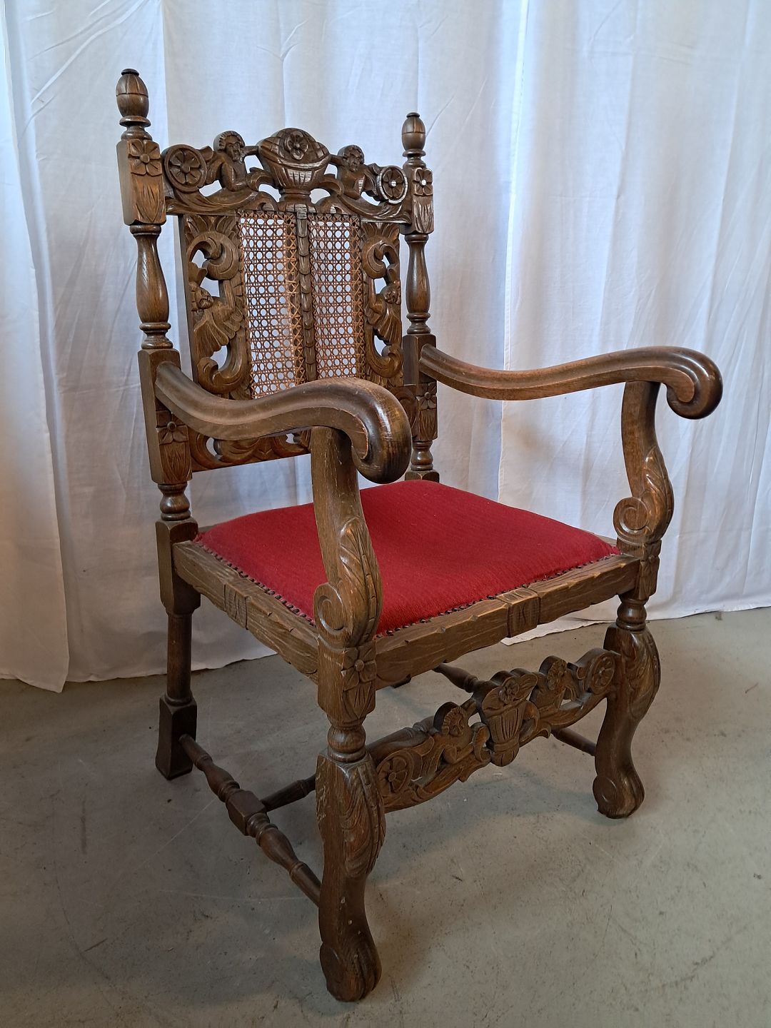 Armstol i massivt egetræ med rørflet, fra 1930erne.