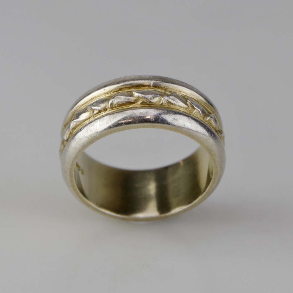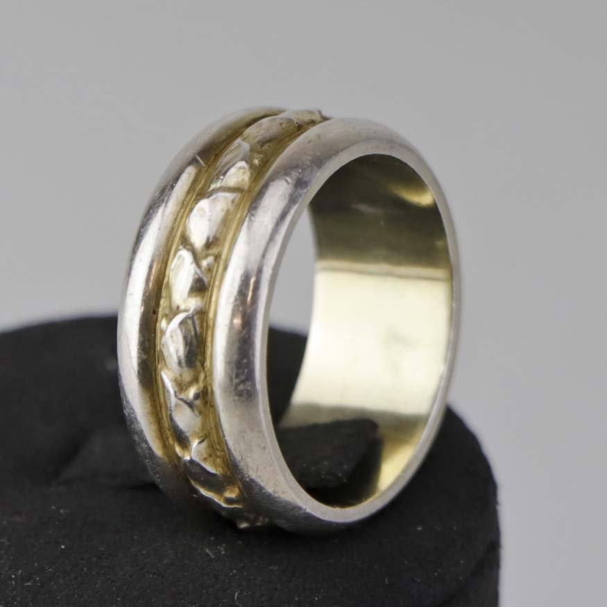 Ring i sterling sølv med guldbelagt inderside og dekoration. Størrelse 66