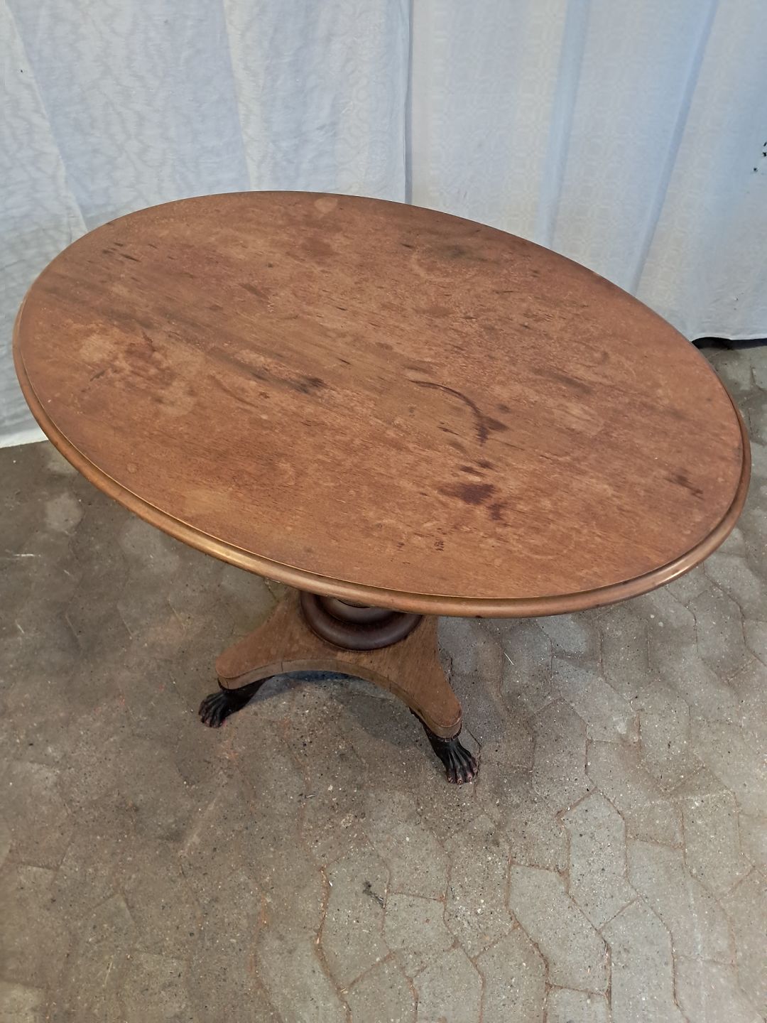 Ovalt salonbord i massivt mahogni, fra 1910erne.