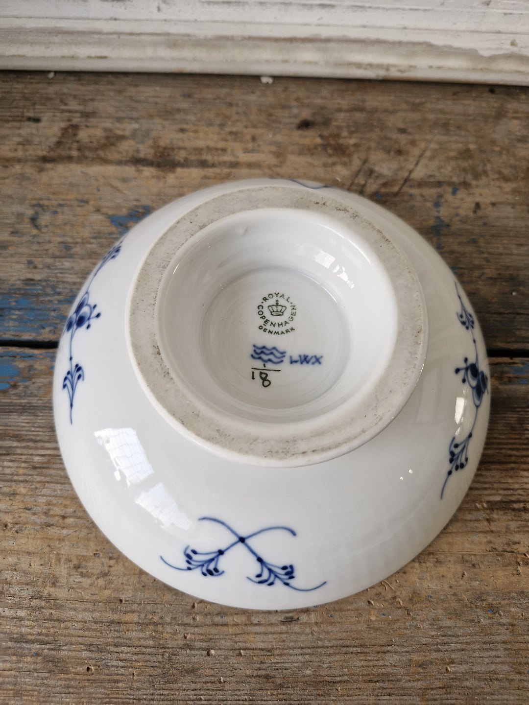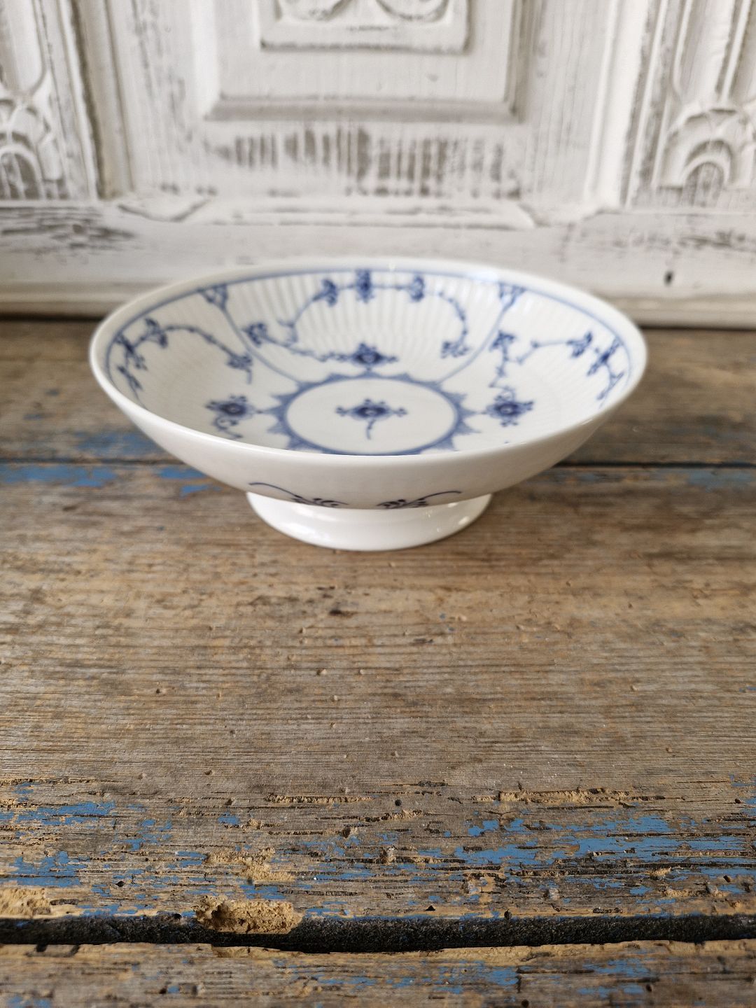 Royal Copenhagen Musselmalet riflet skål på fod no. 18