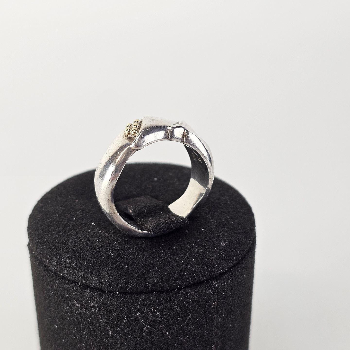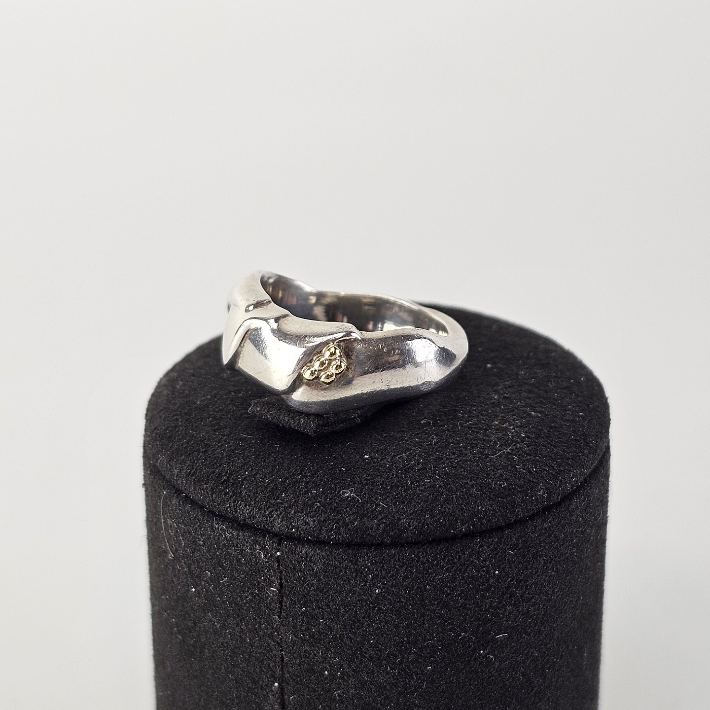 Fingerring i sterling sølv med dekoration i 18 kt guld