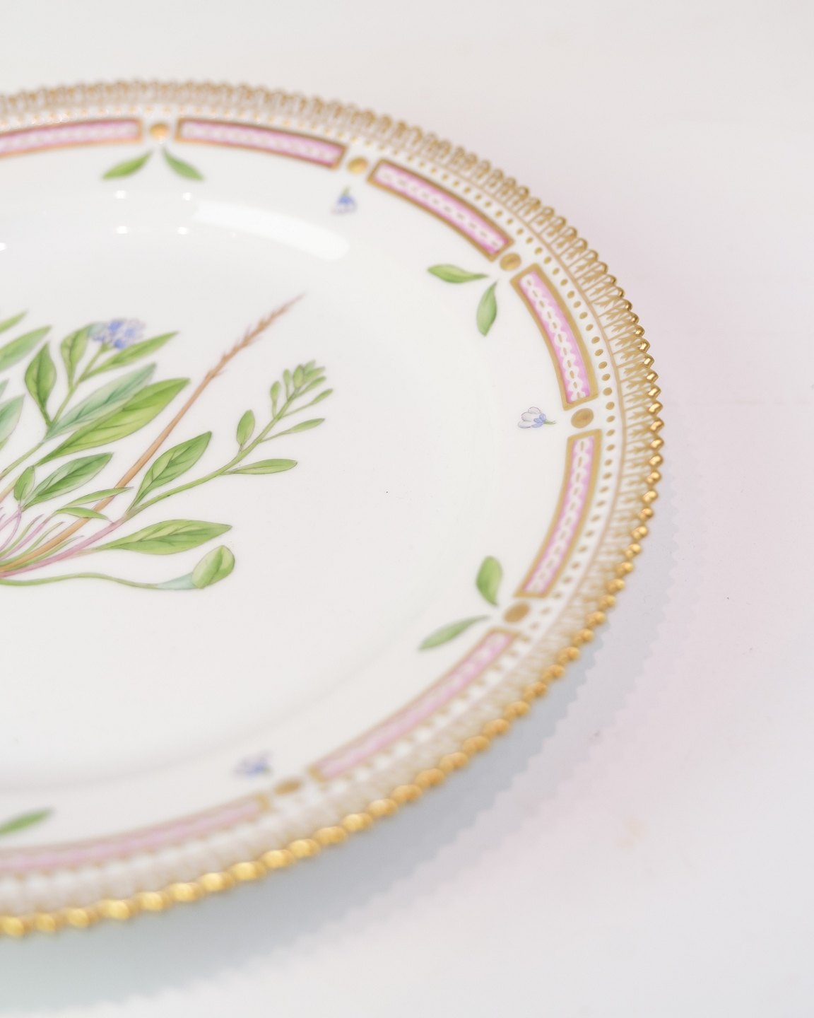 Frokosttallerken fra Flora Danica, dek. nr. 20/3550. Håndmalet og med guldkant. Royal Copenhagen, ca. 1960’erne.