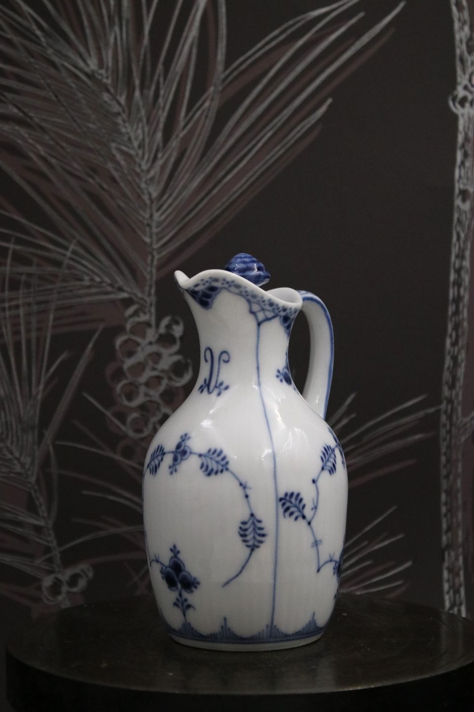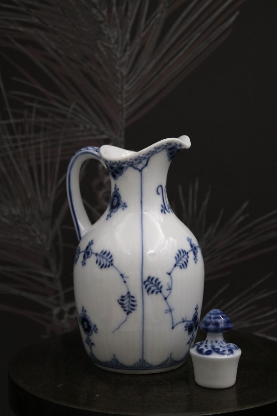 Royal Copenhagen Musselmalet Riflet eddikekande med låg og hank.