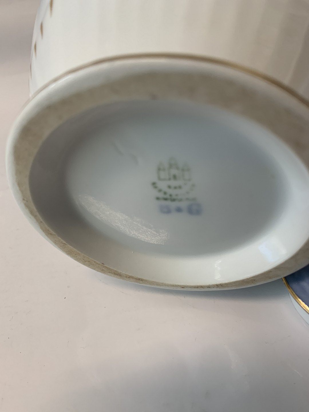 - Musselmalet, Blå Blomst, Empire, Sommerfugl, Blå Vifte, Blåkant, Guld Vifte, Flora Danica, Henriette, Cordial, Relief, Azur, Konkylie, Ursula, Ildpot og mange andre stel.
