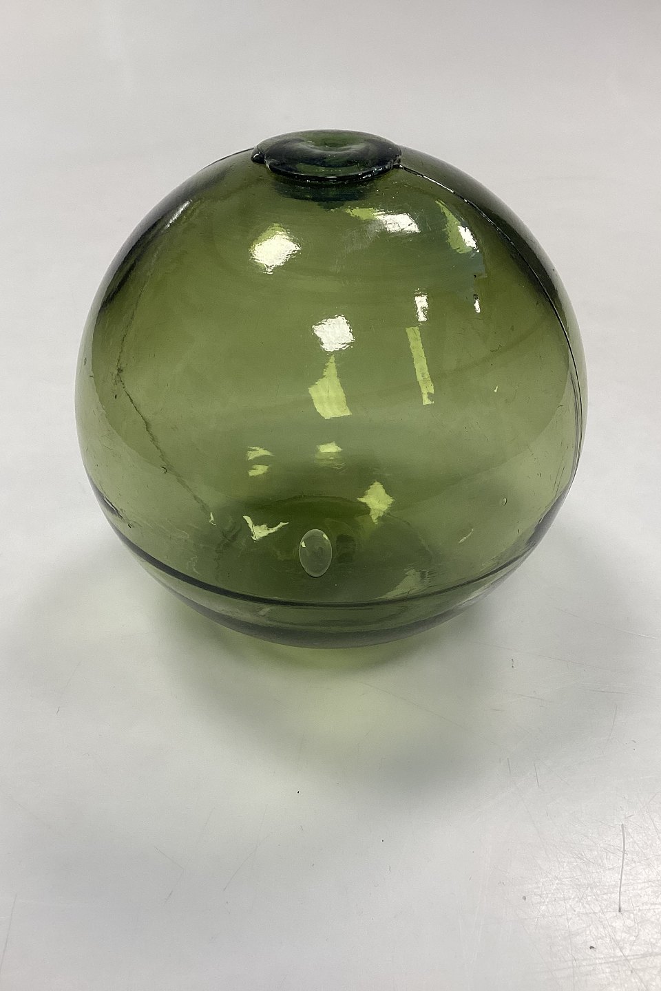 Holmegaard / Kastrup / Fyens Glasværker Dekorationskugle, gammel. Også kaldet fiskekugler, flydelod eller glasflydere. Farve: Olivengrøn.