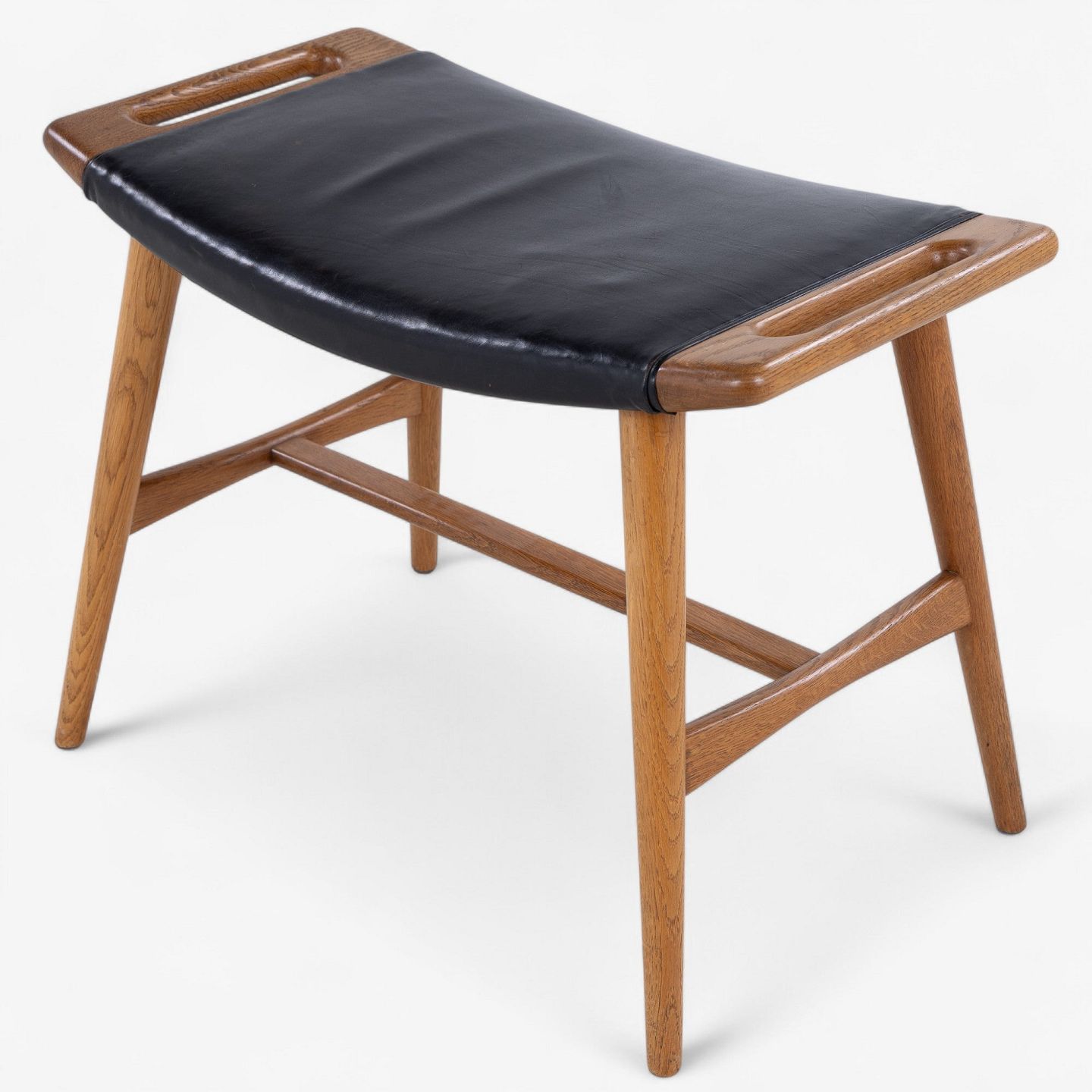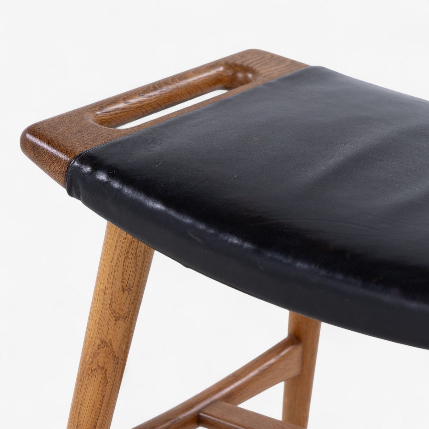AP 30 - Klaverskammel i eg med sæde i patineret sort læder.