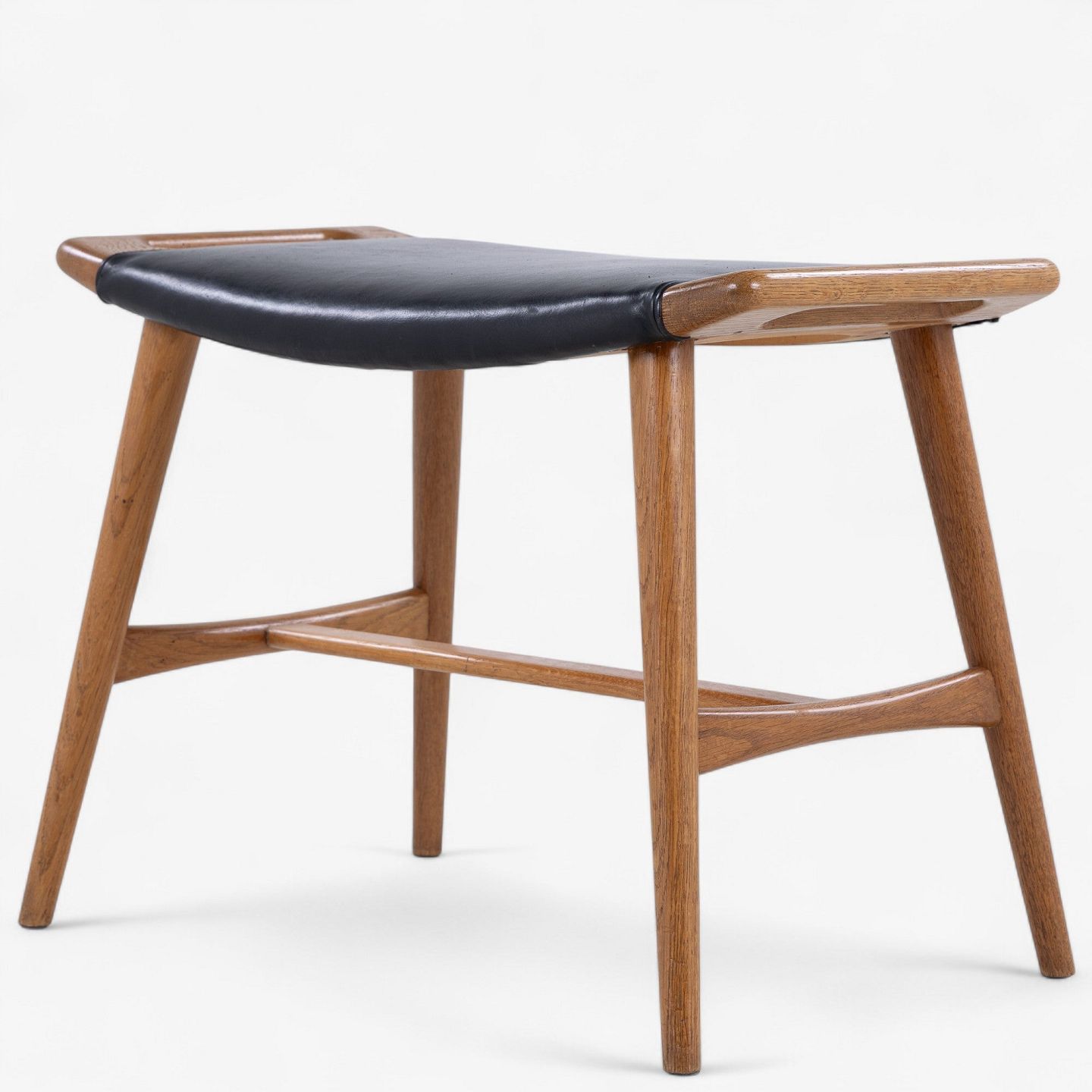 AP 30 - Klaverskammel i eg med sæde i patineret sort læder.