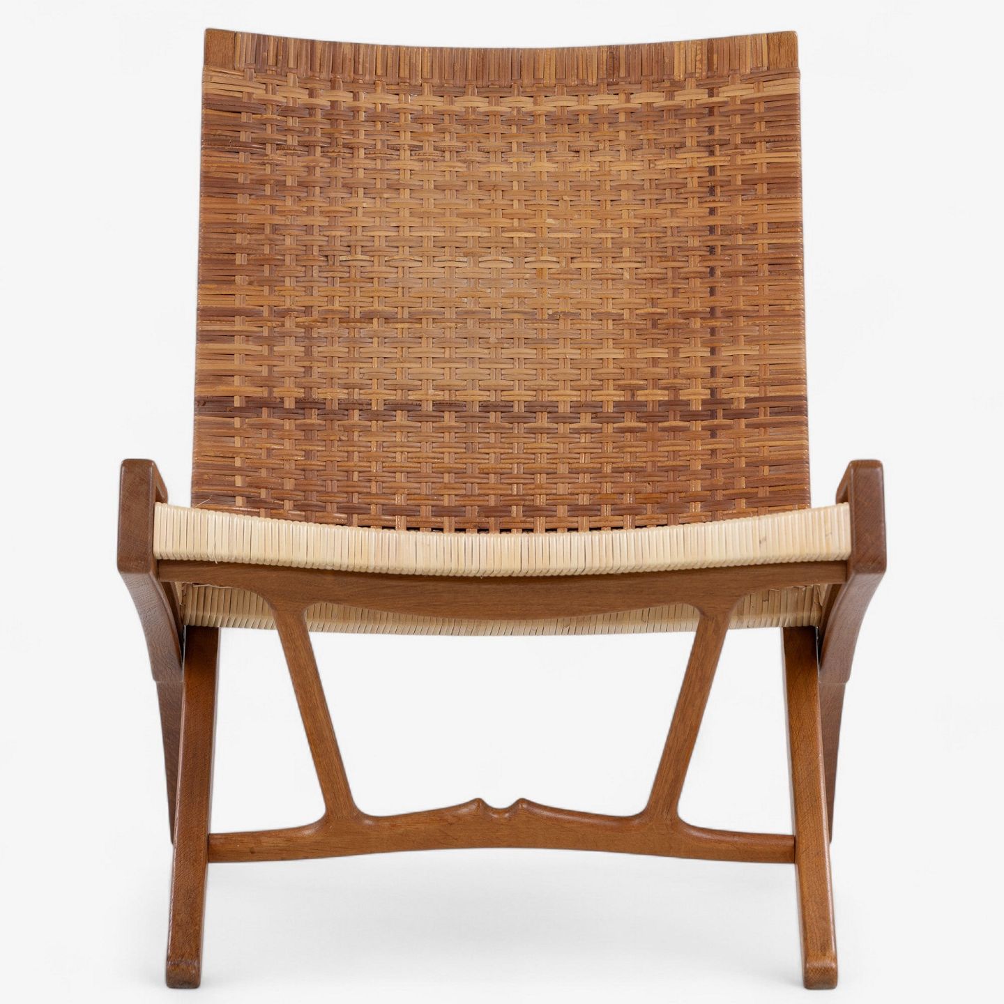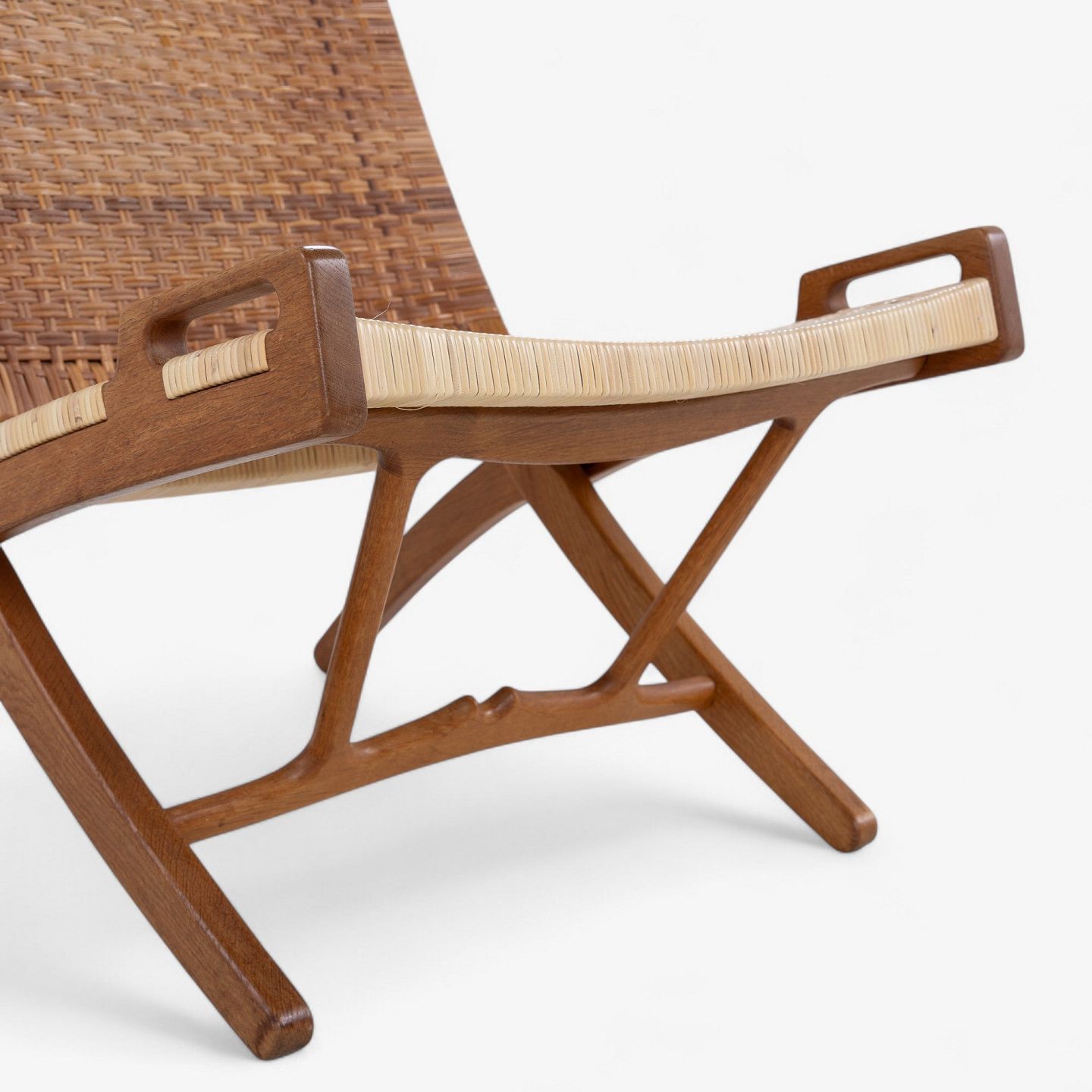 JH 512 - 'Kamin'-foldestol i patineret egetræ med sæde og ryg i delvist originalt flet. Original krog til vægophæng medfølger. Formgivet i 1949.