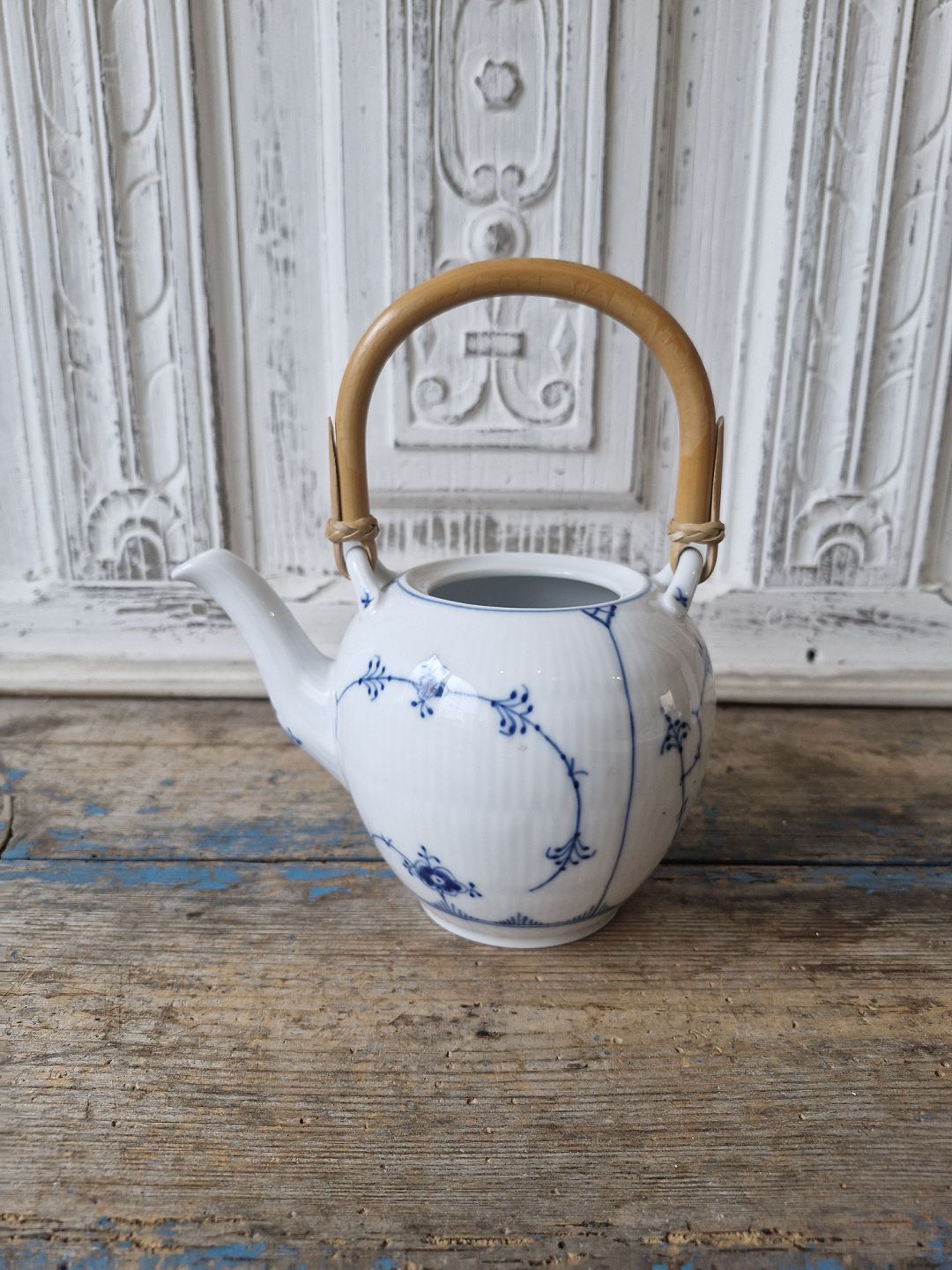 Royal Copenhagen Musselmalet riflet tekande med bambus hank uden låg no. 140