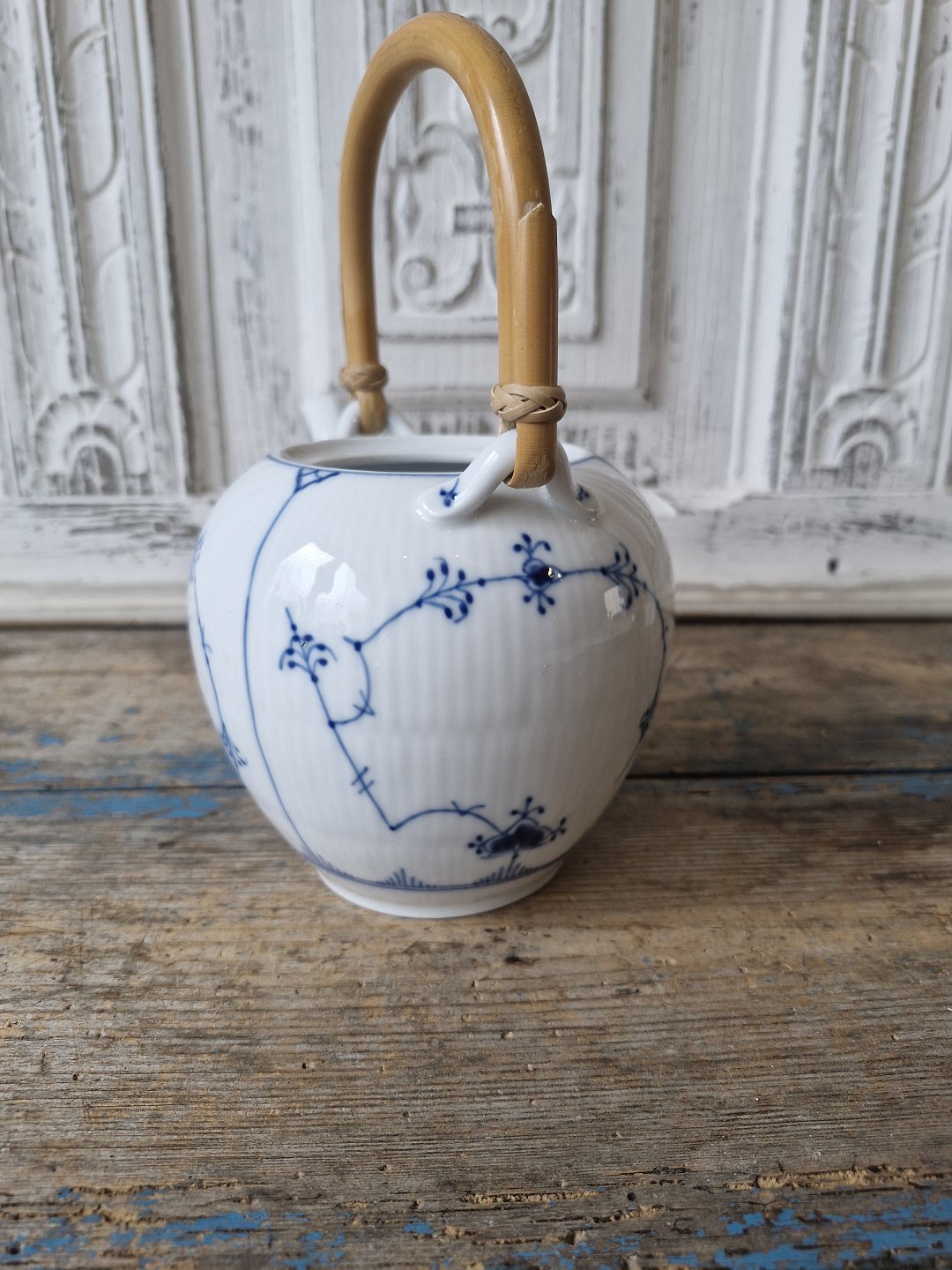 Royal Copenhagen Musselmalet riflet tekande med bambus hank uden låg