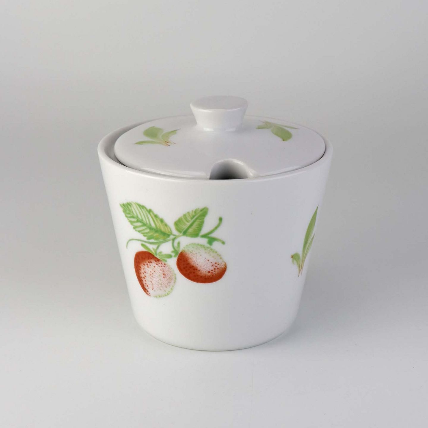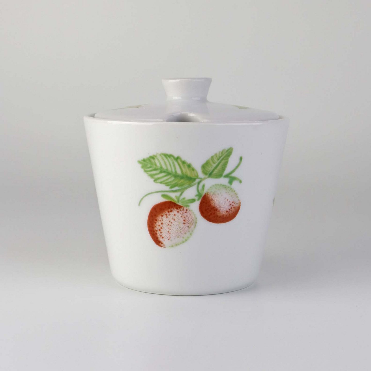 Marmeladekrukke med låg i porcelæn fra stellet Danild 50 Frugt og grønt - også kendt som Picnic stellet.