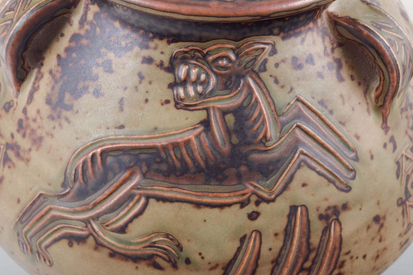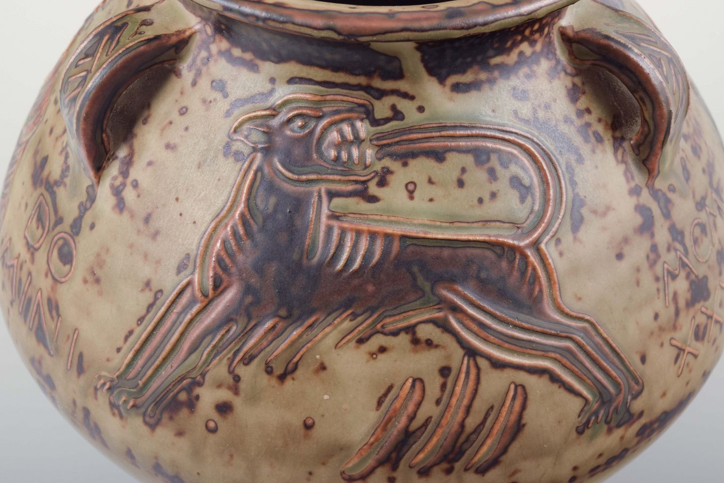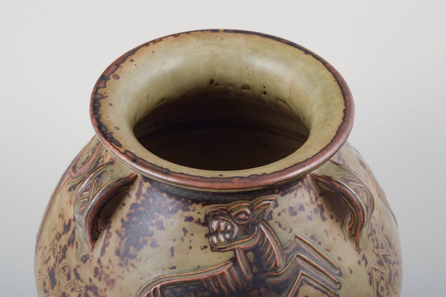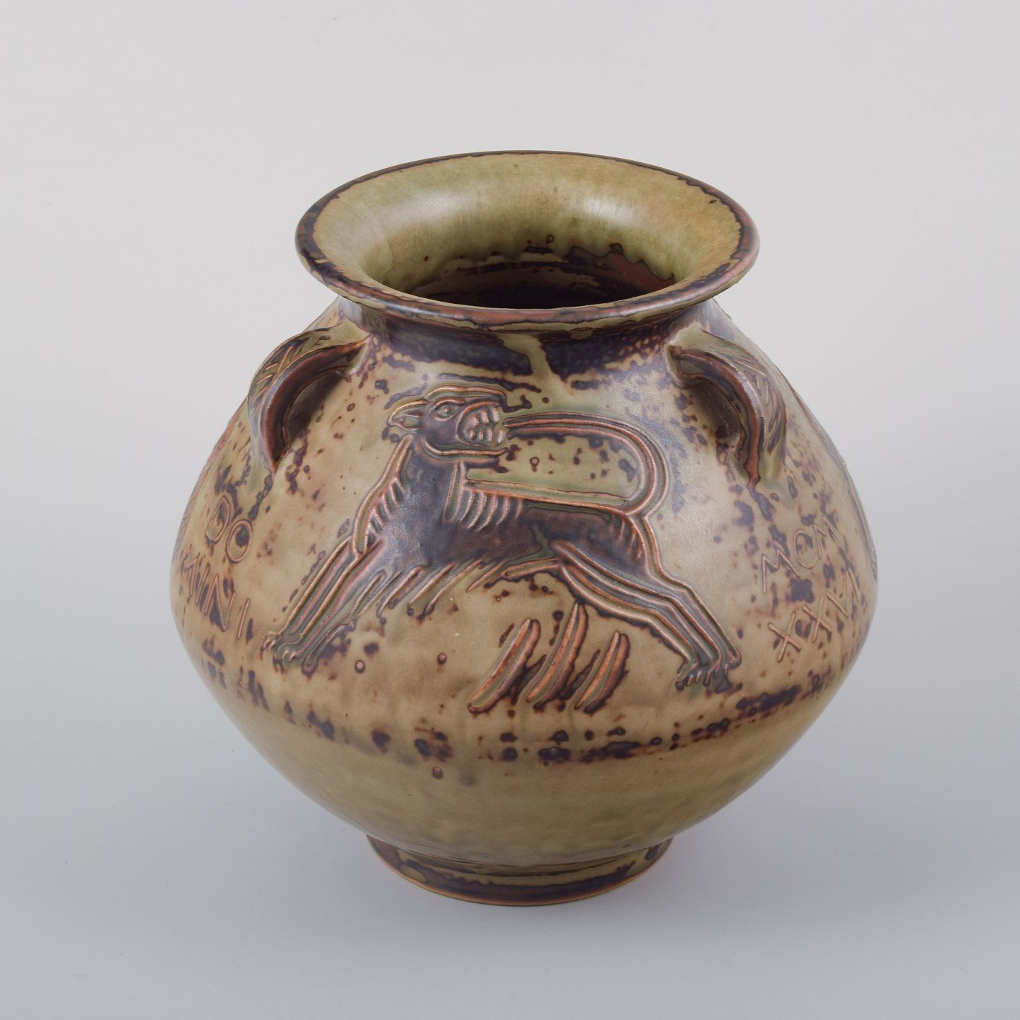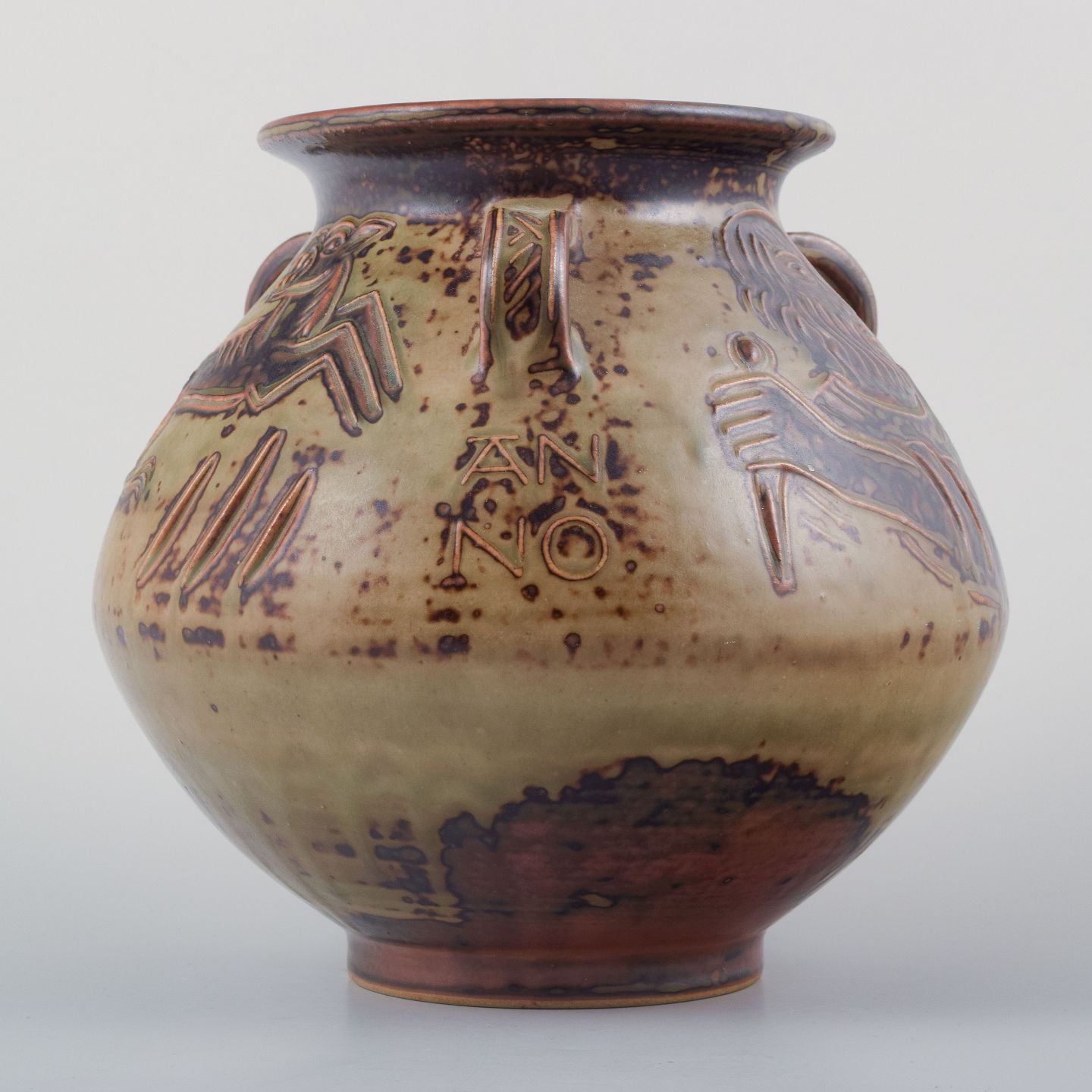 Jais Nielsen for Royal Copenhagen. Keramikvase i sung glasur. Religiøse motiver.
