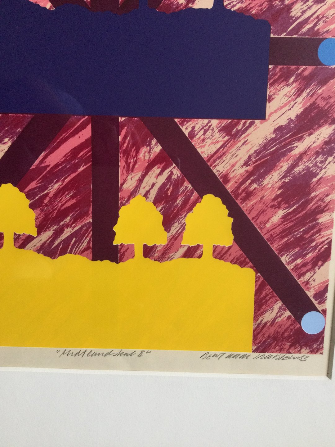 Farvelitografi af Bent Karl Jacobsen - Komposition "Landskab II 1983.