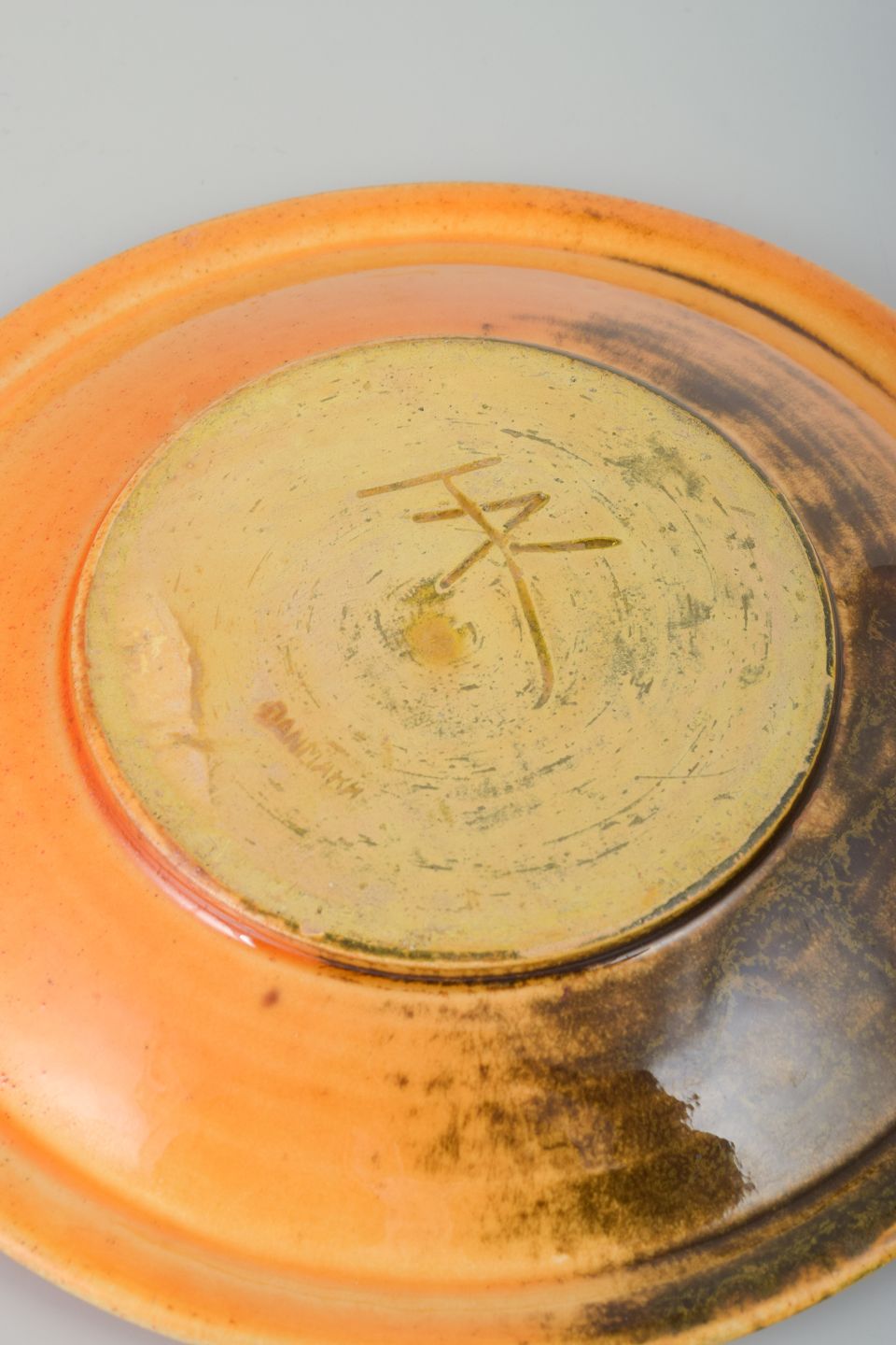Lille fad designet af Svend Hammershøi for Kähler, udført i 1930’erne. Glaseret i en varm, dyb orange uranglasur med fin farvedybde og lette nuancer i overfladen. En enkel, klassisk form, som fremhæver glasurens intense spil.
