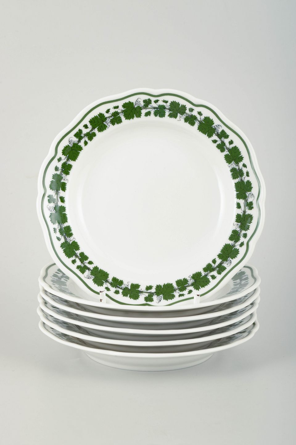 Meissen, 6 små tallerkener, stel Vine-Leaf Pattern, “Voller grüner Weinkranz”