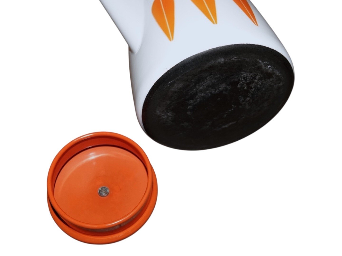 Hvid og orange emalje Lotus kaffekande fra Cathrineholm i Norge.