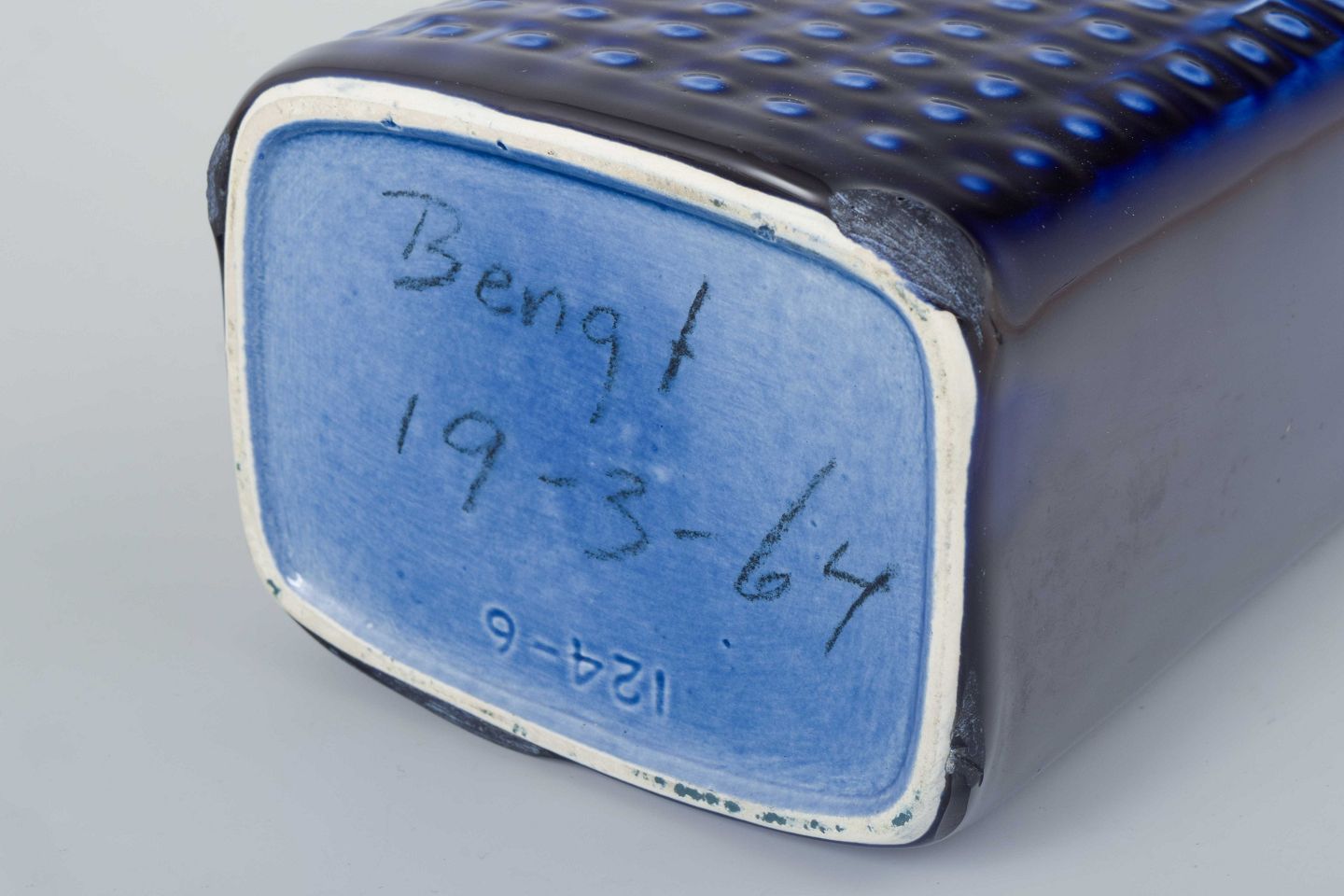 Bio: Bengt Berglund (1936–2019) var svensk keramiker og designer, uddannet ved Konstfack i Stockholm. Han arbejdede for Gustavsberg fra 1960 og er kendt for sine arkitektoniske former og eksperimenterende glasurer. Hans værker regnes i dag blandt de mest interessante eksempler på svensk keramik fra 1960’erne.