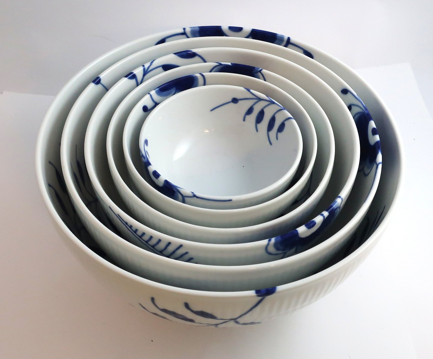 Royal Copenhagen. Blue Mega fluted. 6 different bowls. Largest bowl diameter 24 cm and height 11 cm. (1 quality)