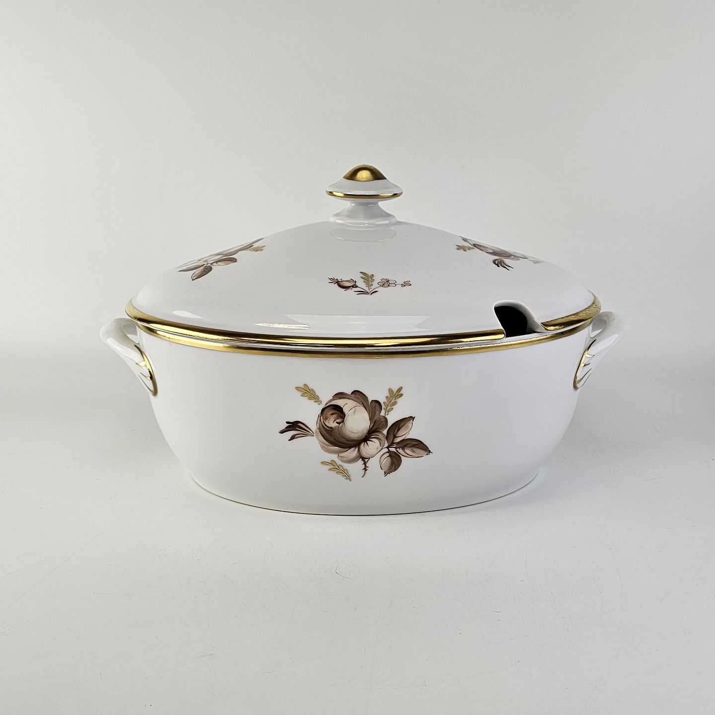 Terrin med låg i porcelæn fra stellet Brun Rose