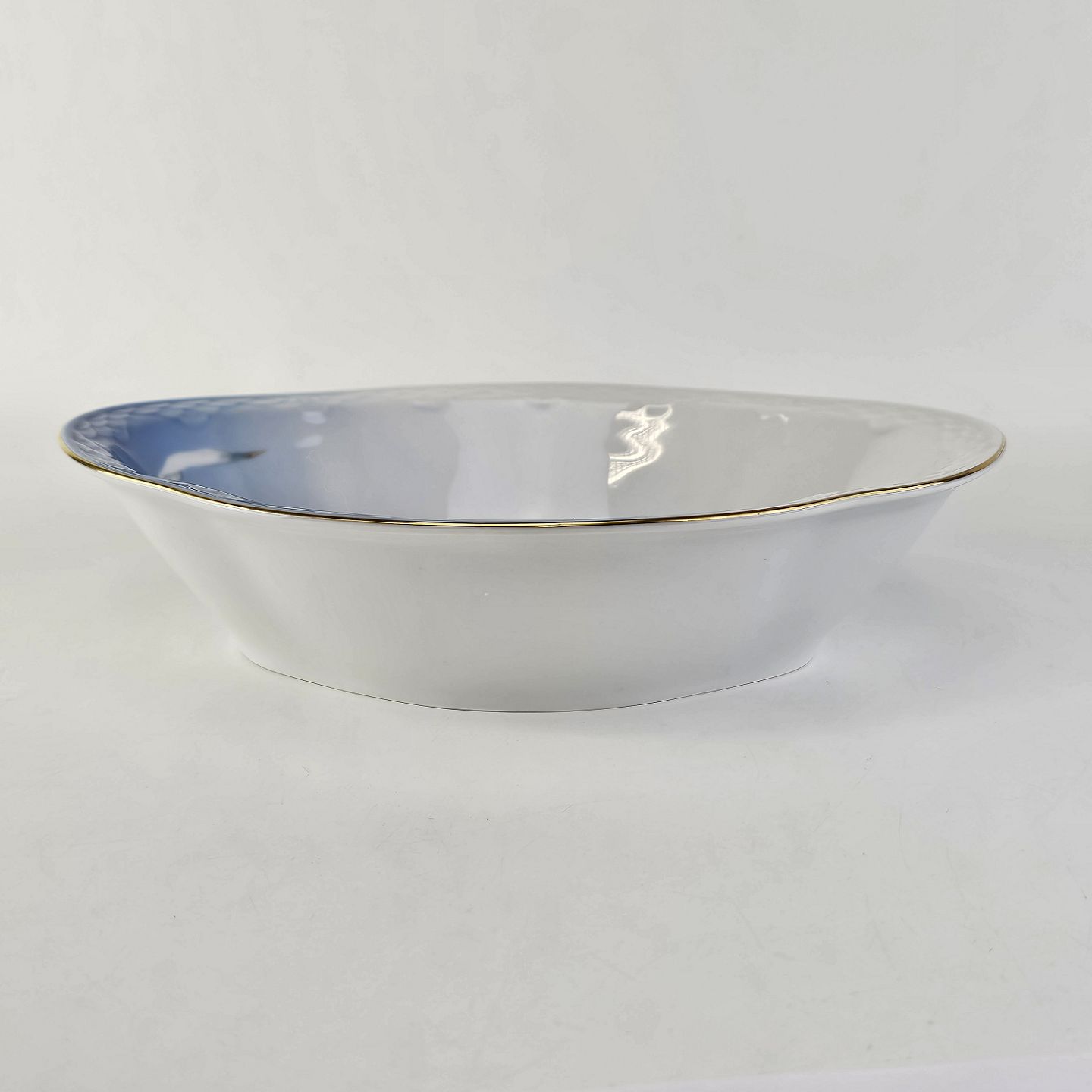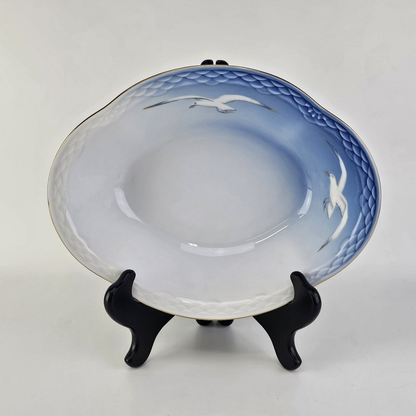 Oval skål i porcelæn fra stellet Mågestel med guldkant