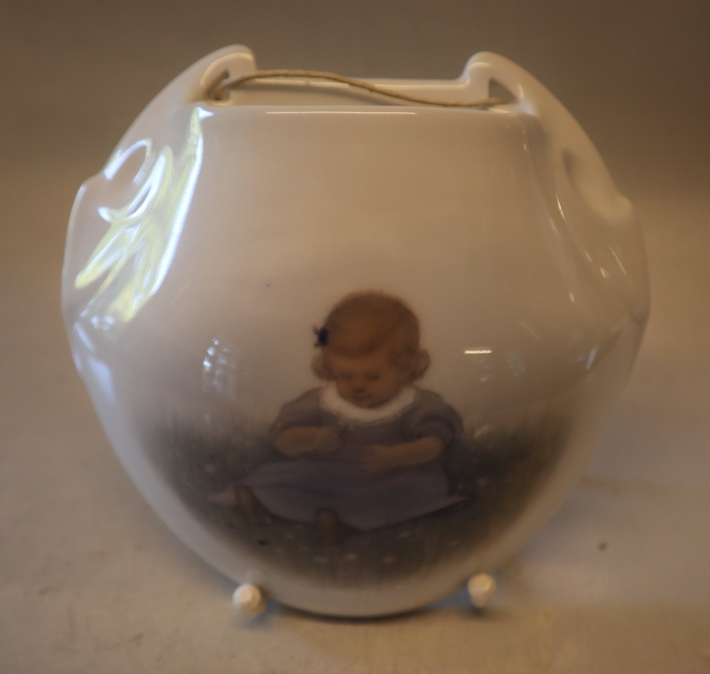 B&G 115 Vægvase Siddende lille pige 17 cm Signeret MH Ida Margrethe Hyldahl Bing & Grøndahl I fin og hel stand.