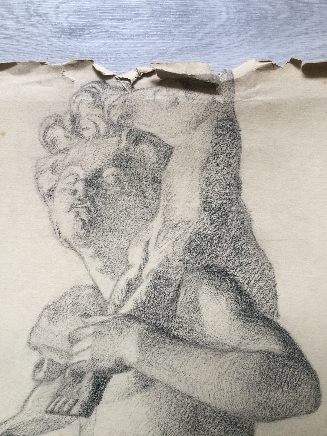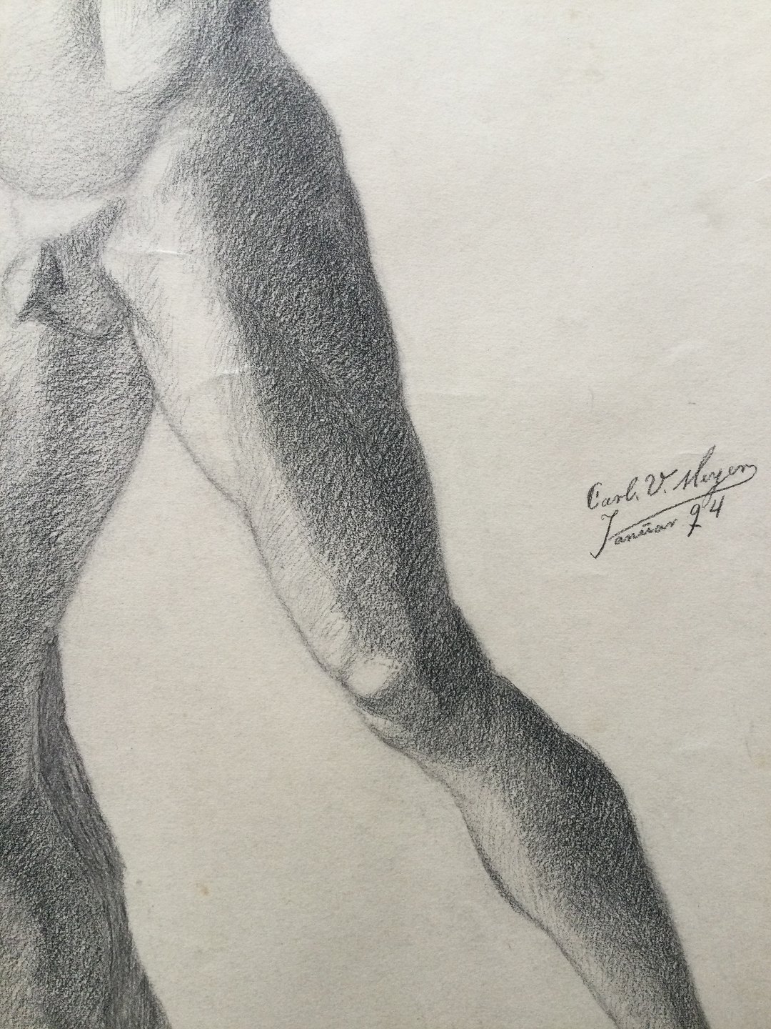 Akademitegning af Carl V. Meyer - Nøgen mand - Jæger med bytte 1894.