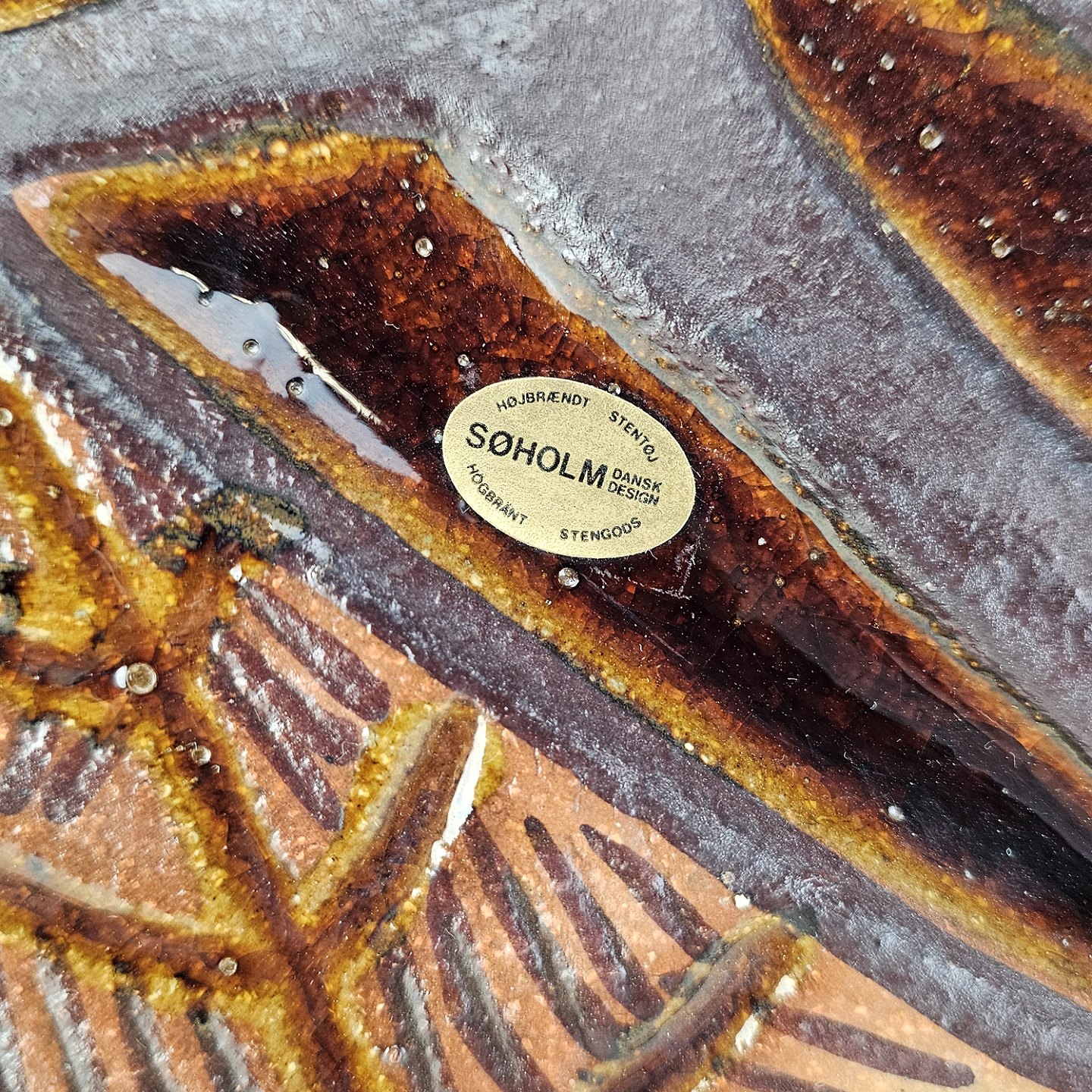 Relief i glaseret højbrændt stentøj med motiv af en fugl
