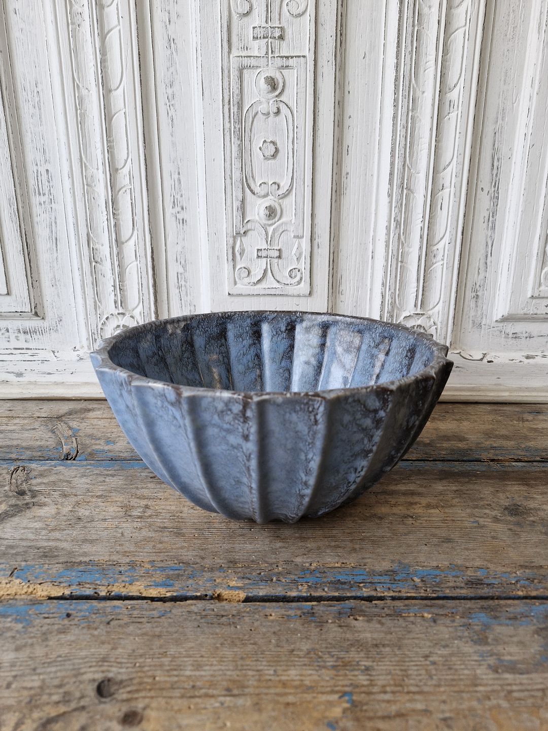 Michael Andersen stor riflet skål med smuk blå glasur no. 4569
