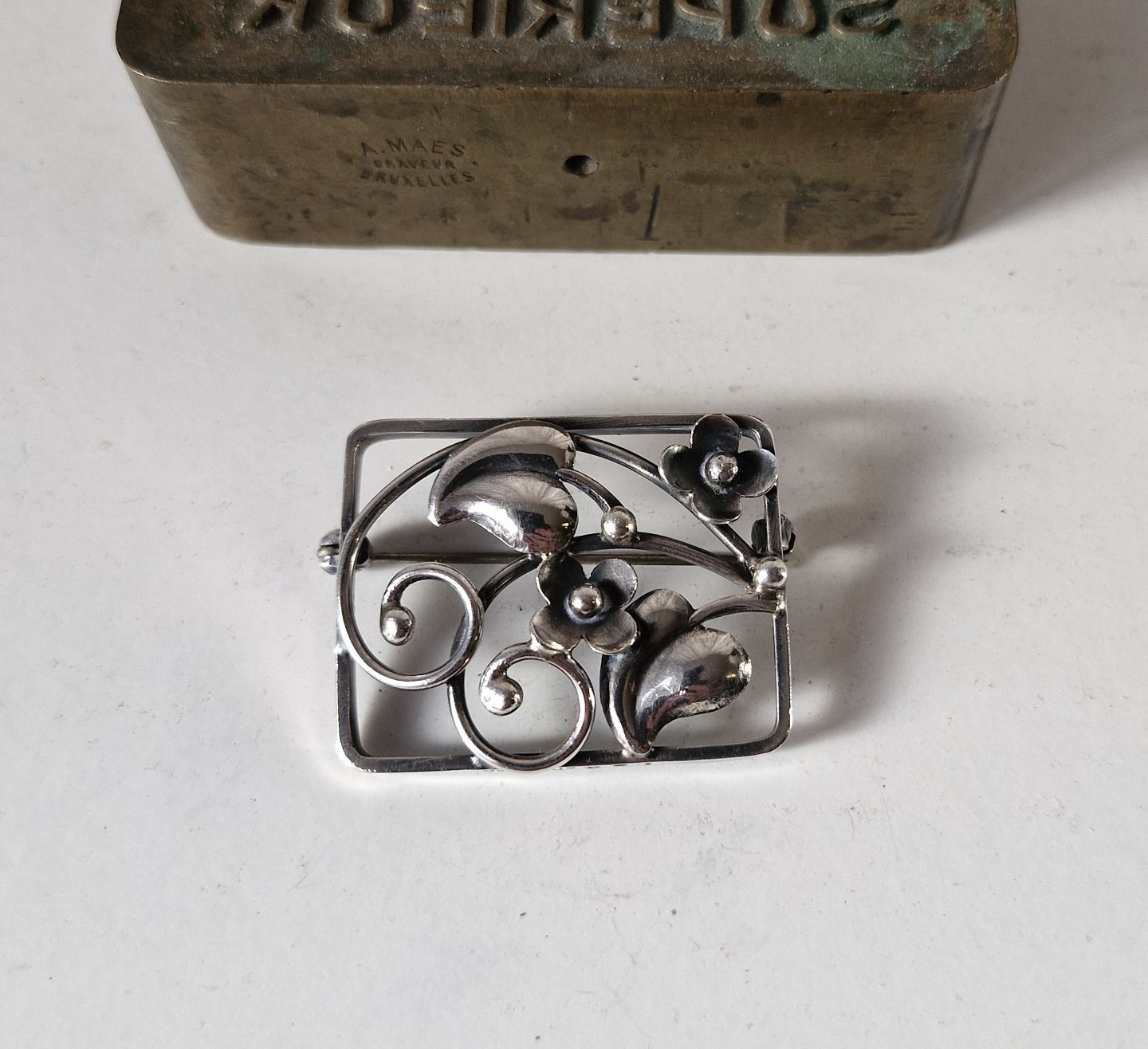 Silver brooch decorated with flowers