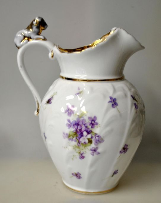 Porcelæns løve chokoladekande, C. T. Altwasser, 19. årh. Tyskland. Hvidt porcelæn. Dekoration i form af blomster i overføringsteknik. Stemplet. Med forgyldninger. Uden låg. H: 24 cm.