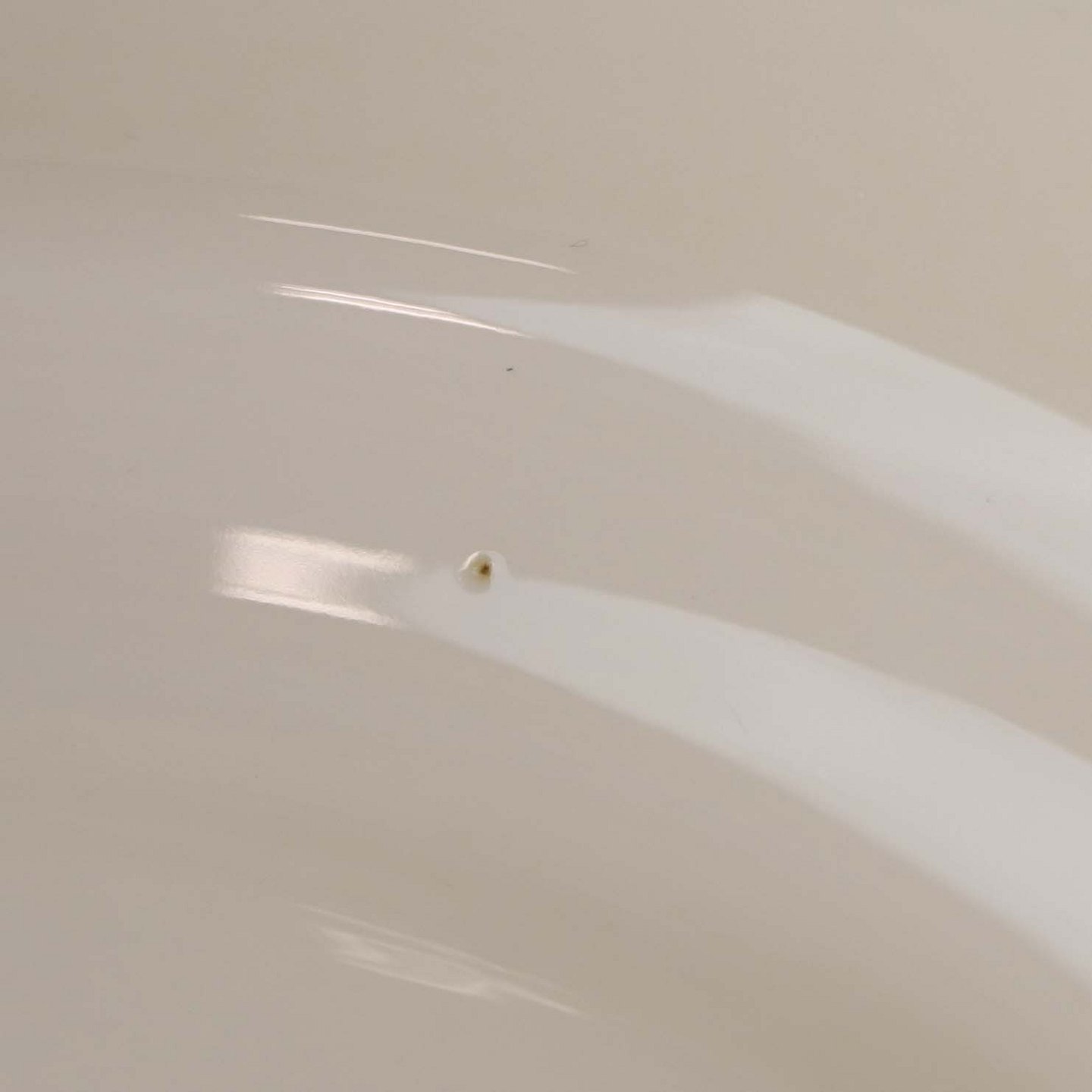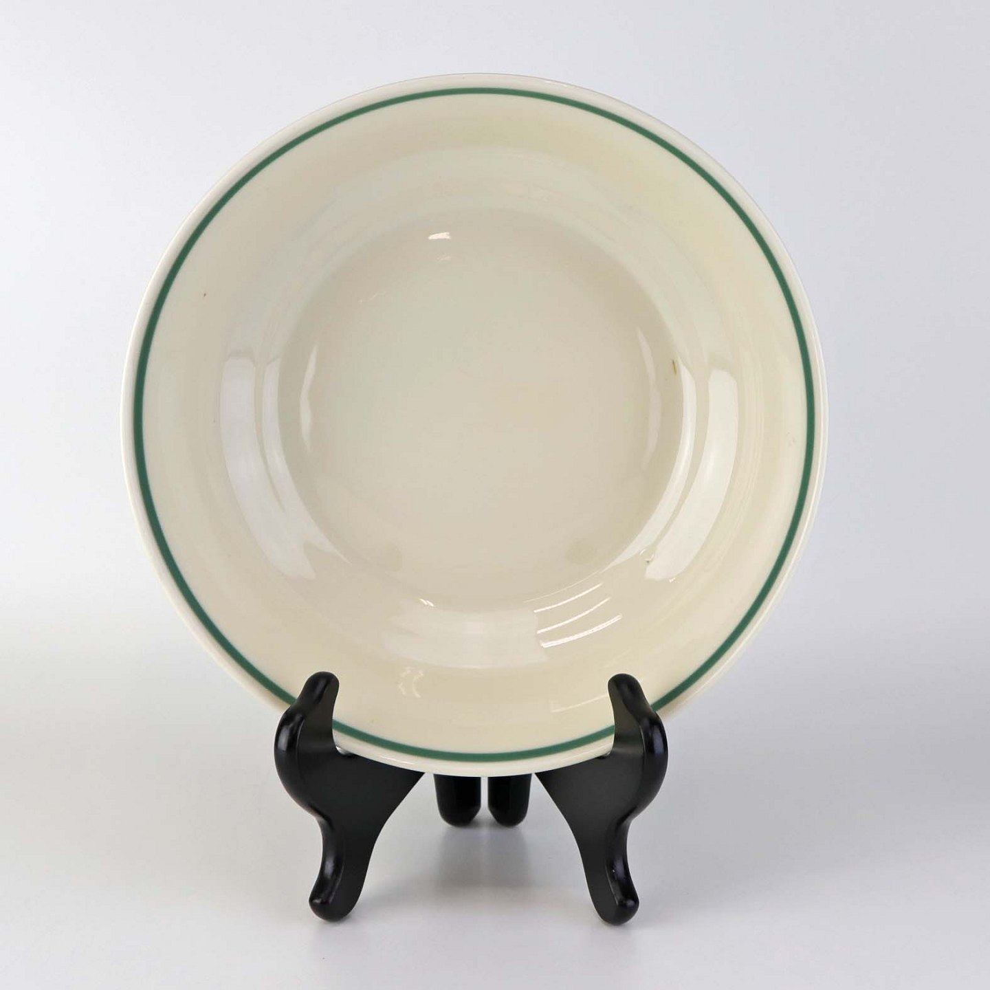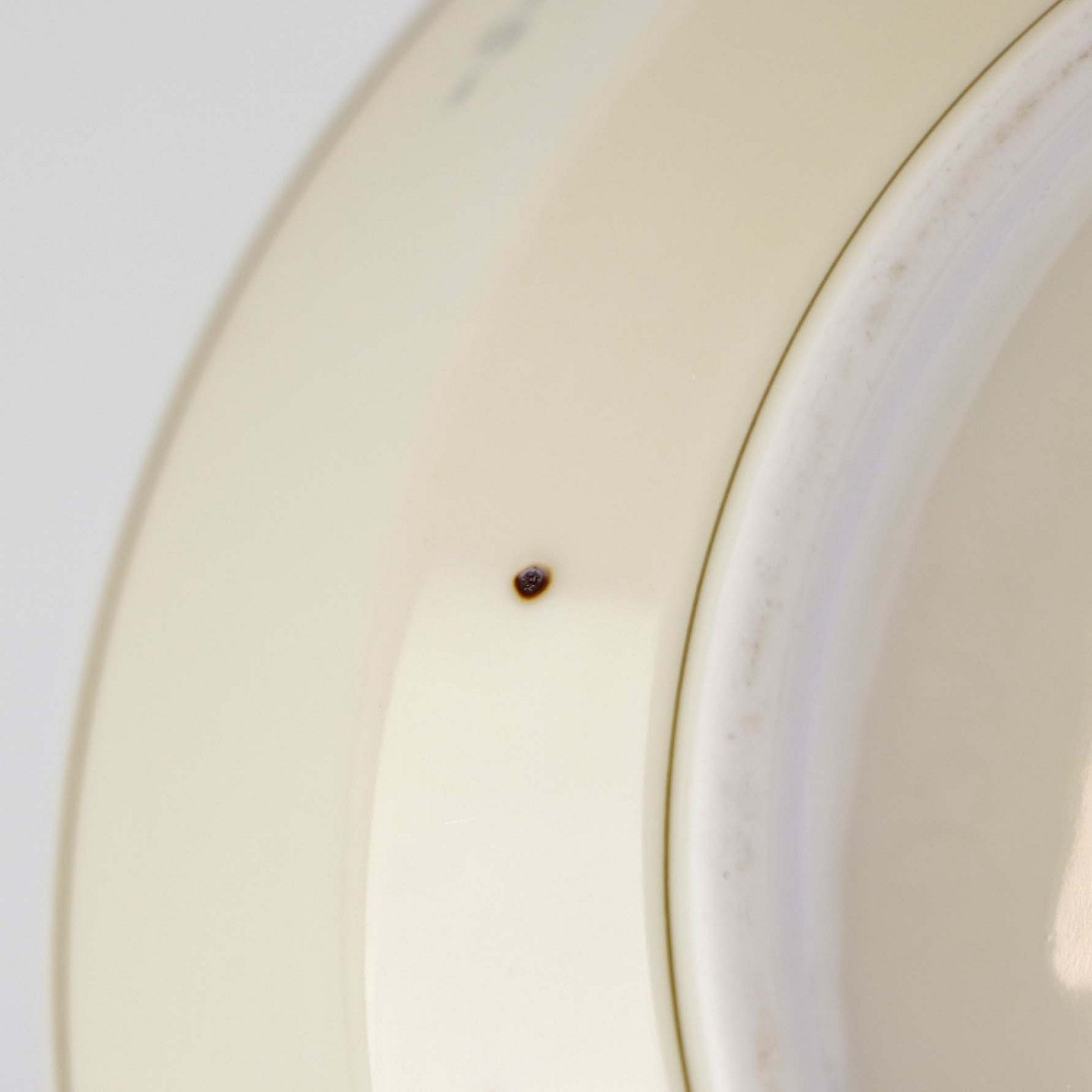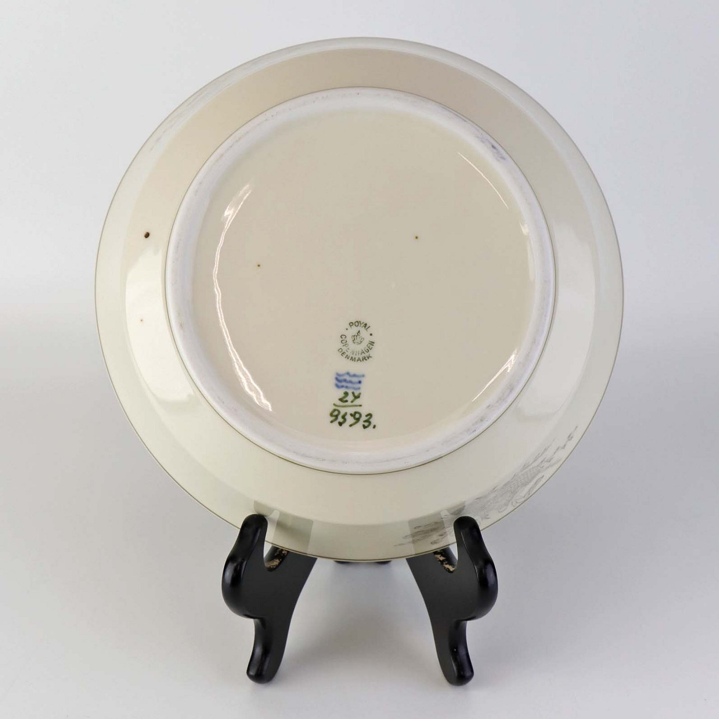 Fremstår med mindre brugsspor i bunden af skålen, ujævnhed i glasuren samt enkelte brune pletter under glasuren.