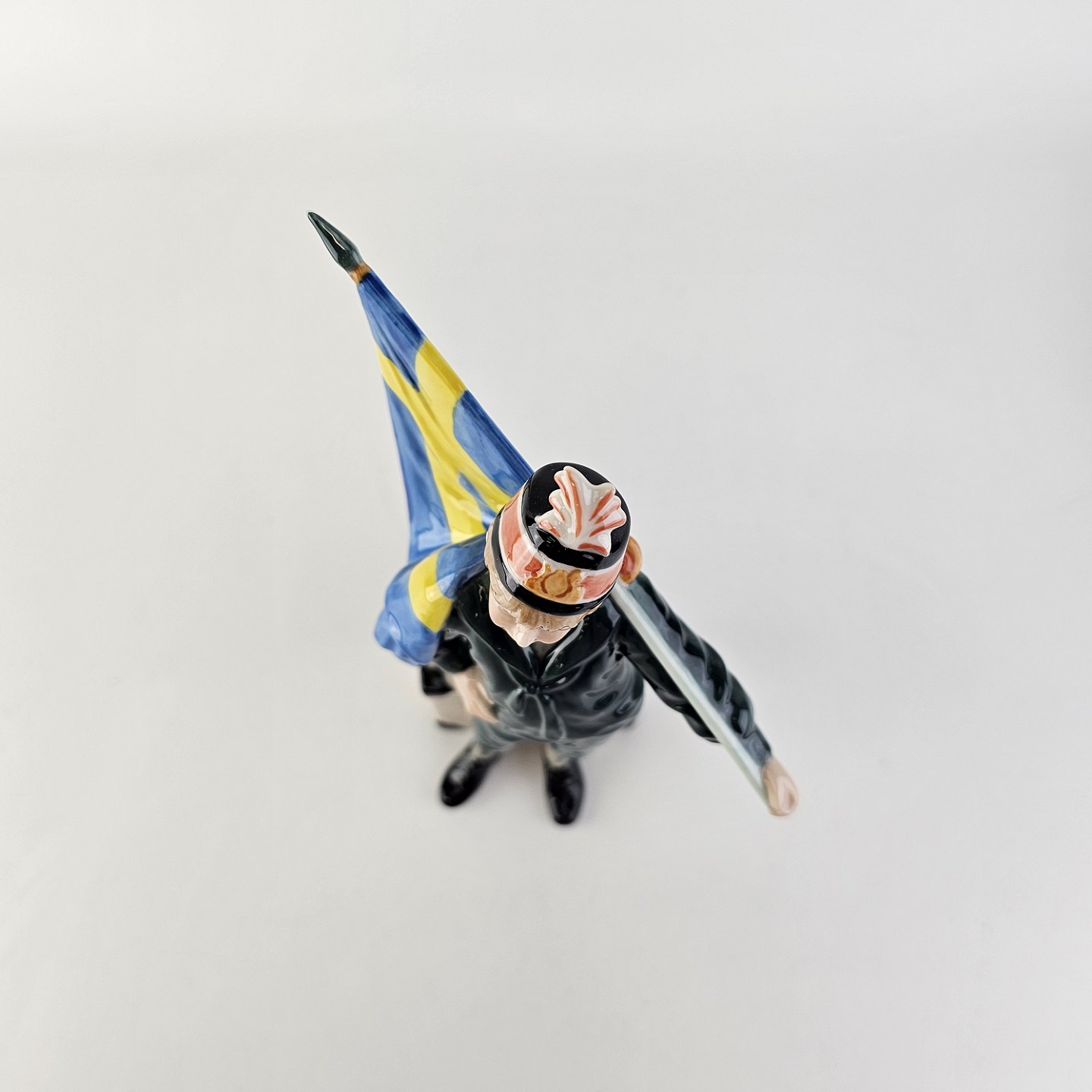 Pontus figur af porcelæn med motiv af en dreng med et svensk flag