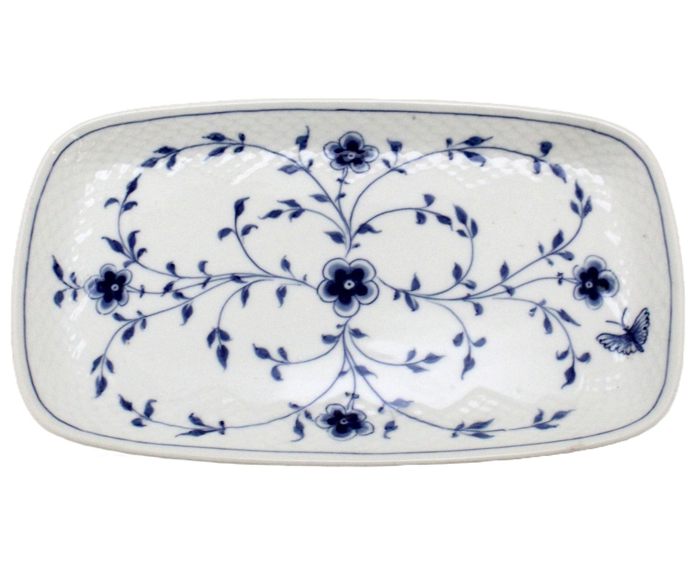 Bing & Grøndahl, Sommerfugl, Bakke til sukker og fløde. Højde 2 cm. Længde 27 cm. Bredde 15,5 cm. Produceret i perioden 1915-1948. I. sortering. Fin stand. Pris: 475 kr. stk. Lager: 1