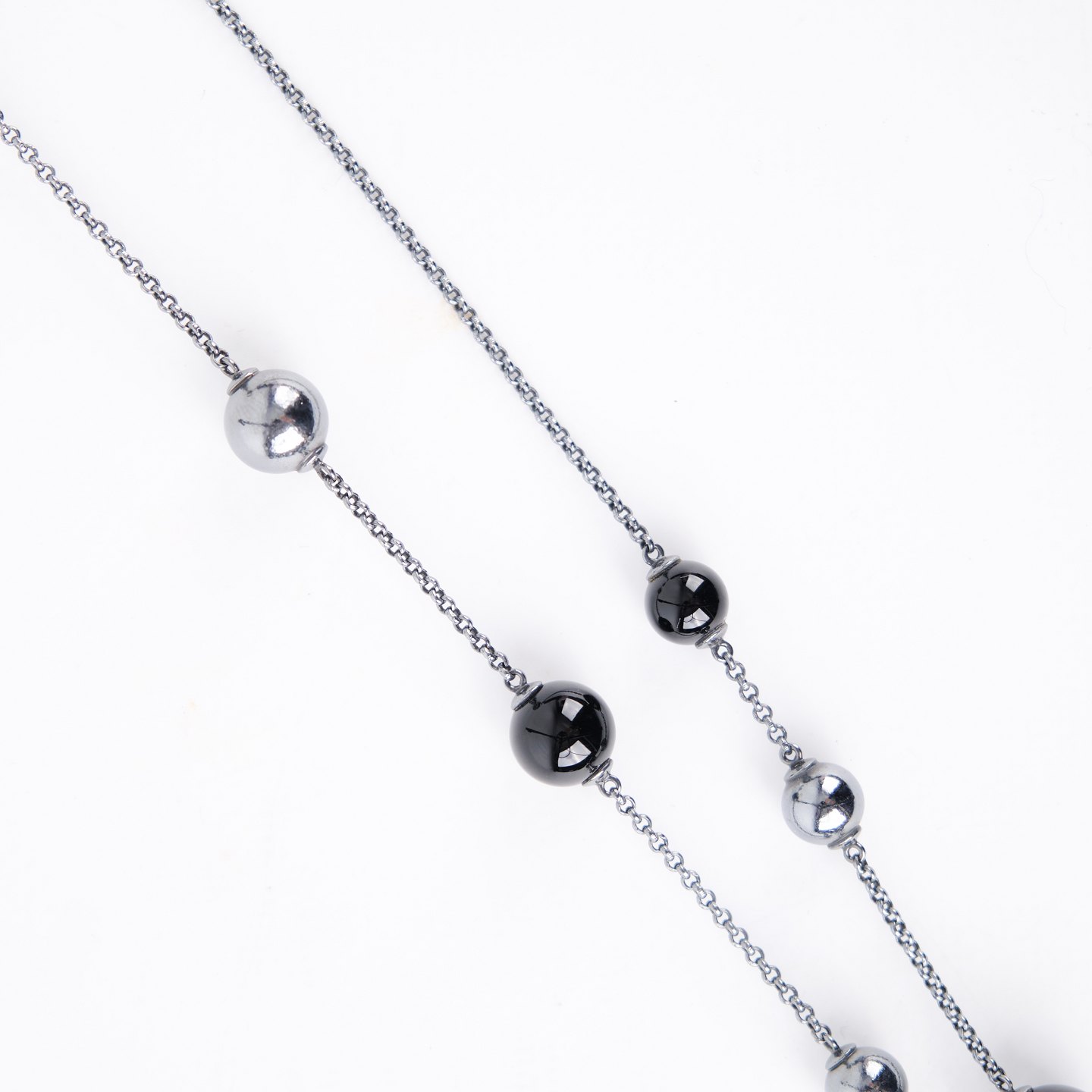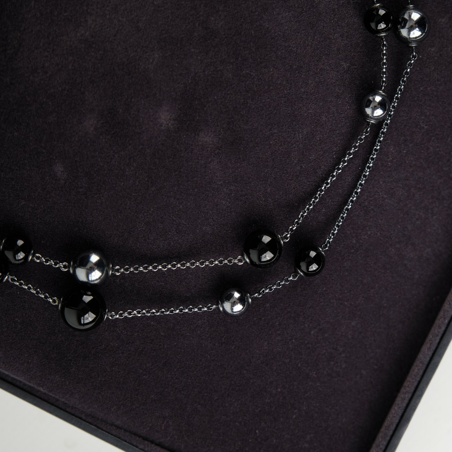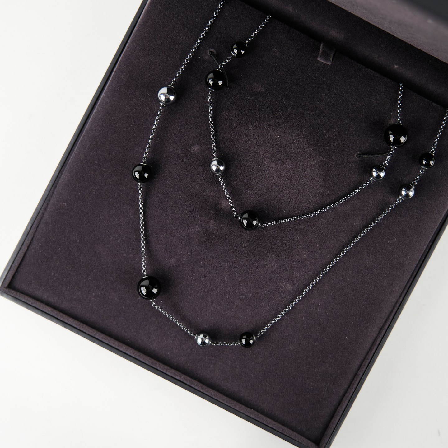 Halskæde – “Sphere Sautoir” – Georg Jensen – 925 sterling – Sort agat – Original æske